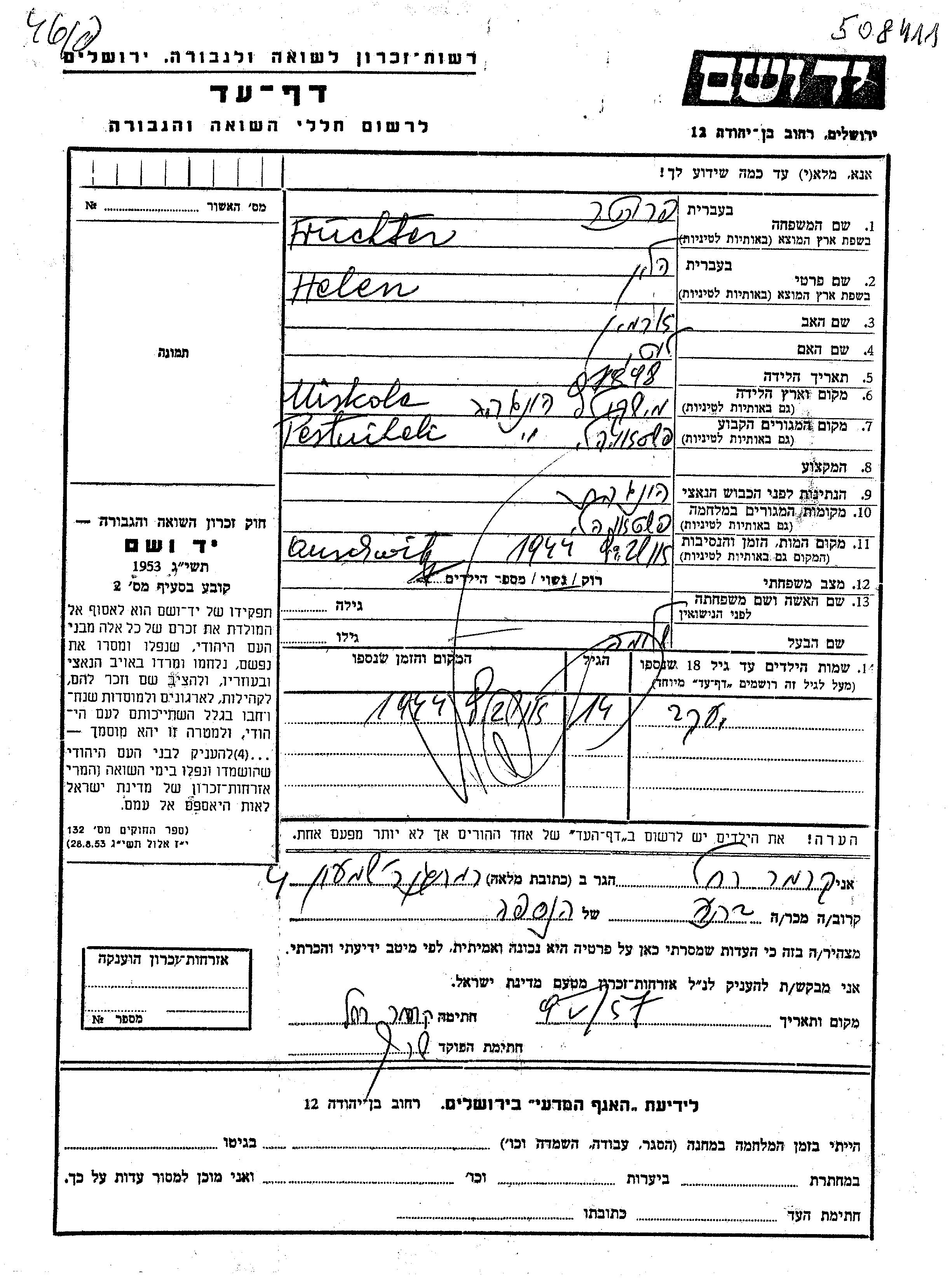 Яд Вашем - Листы свидетельских показаний Мемориального фонда