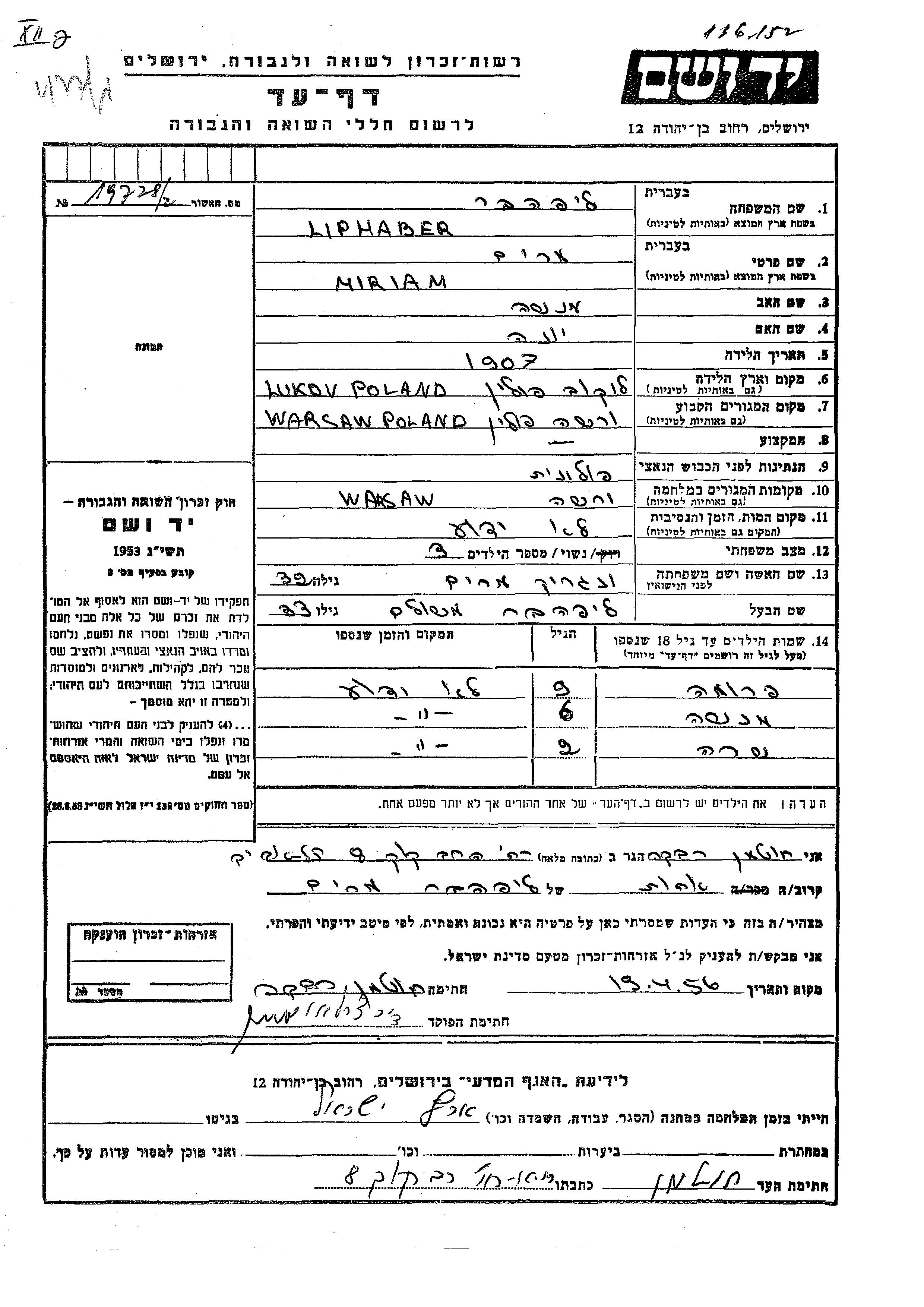 Липхабер Сара Варшава, Польша Лист свидетельских показаний