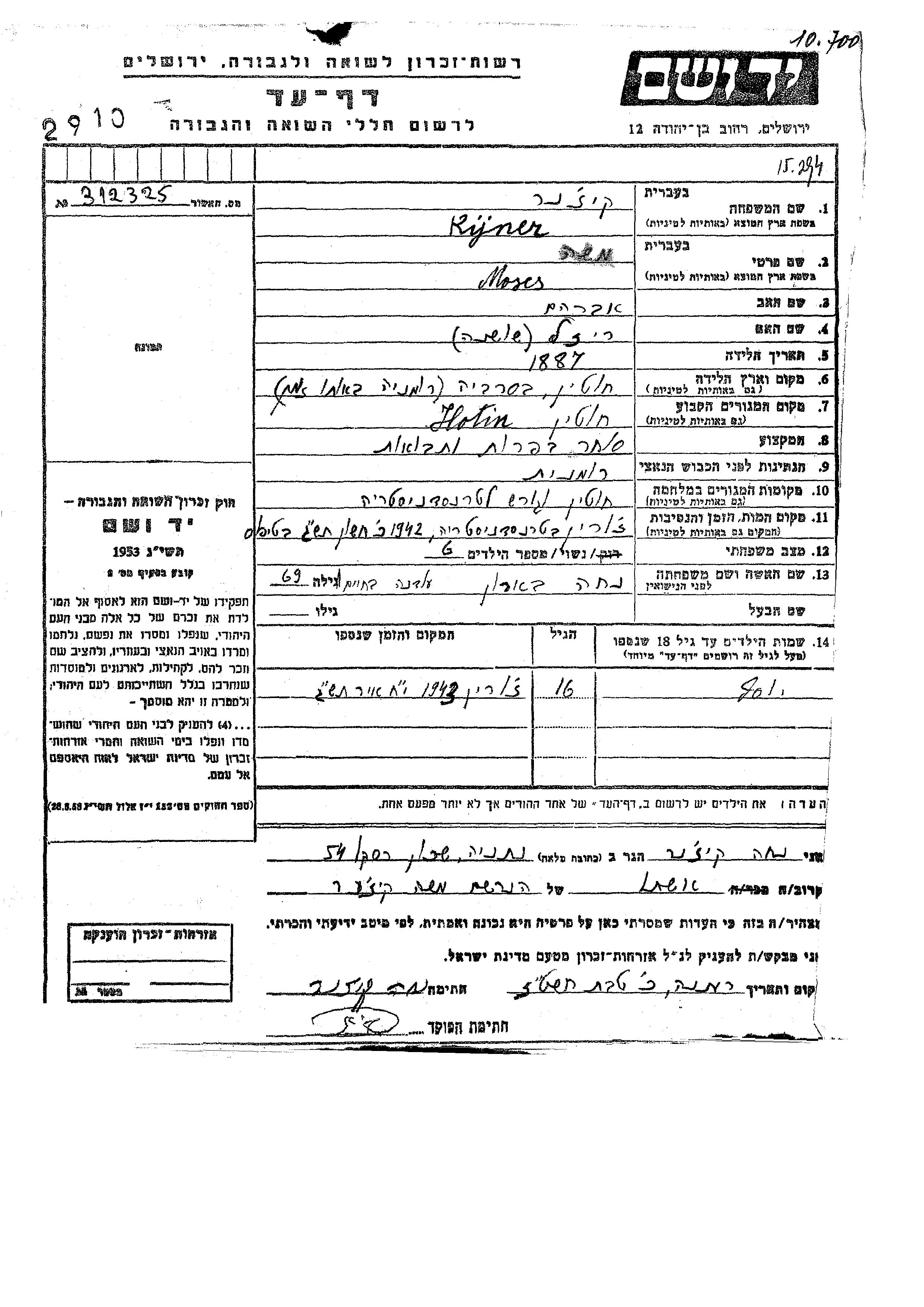 Кижнер Иосеф Хотин, Румыния Лист свидетельских показаний
