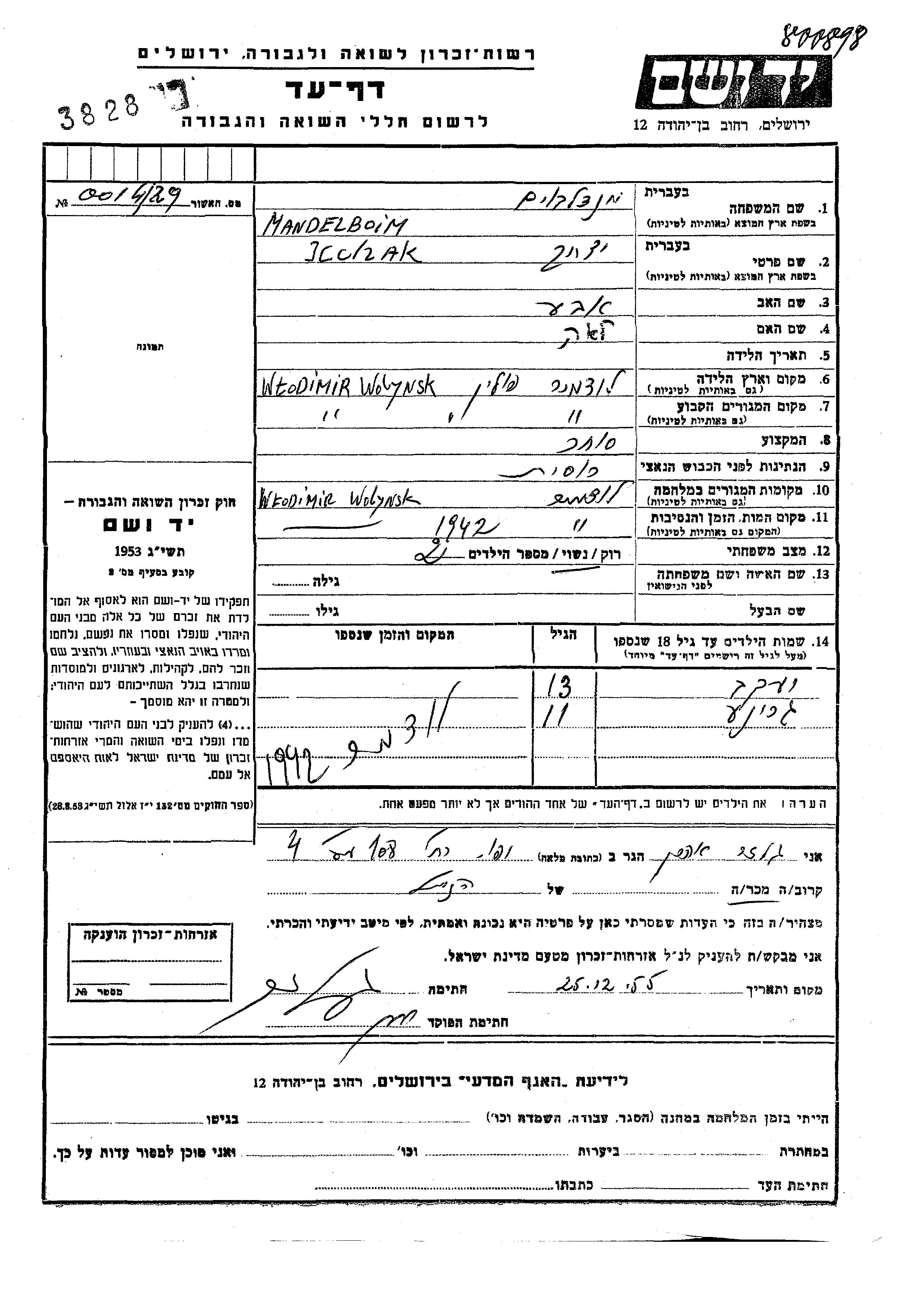 Мандельбойм Яков Влодзимеж, Польша Лист свидетельских показаний