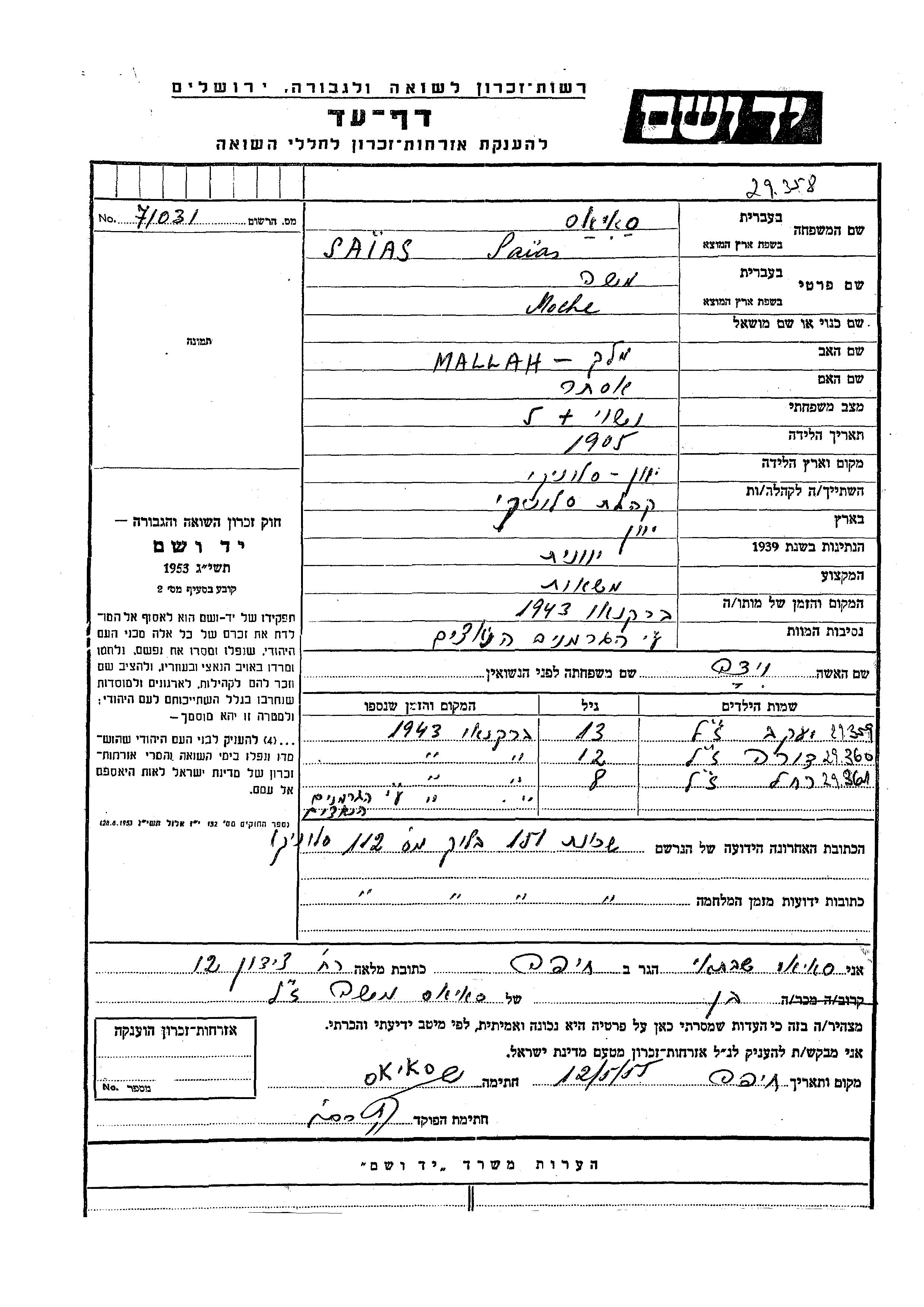 Во время Шоа: 1933-1945гг; точно или в диапазоне 2-5 лет