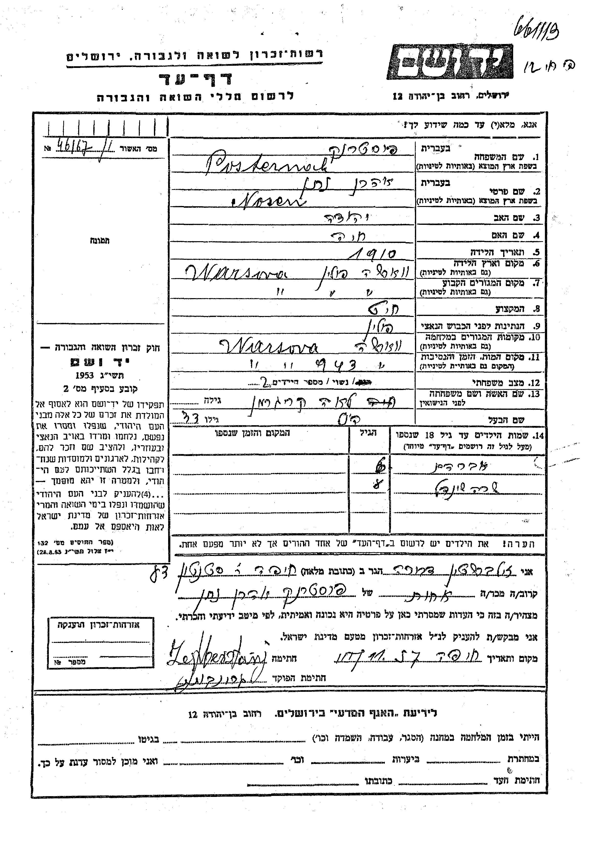 Яд Вашем - Листы свидетельских показаний Мемориального фонда