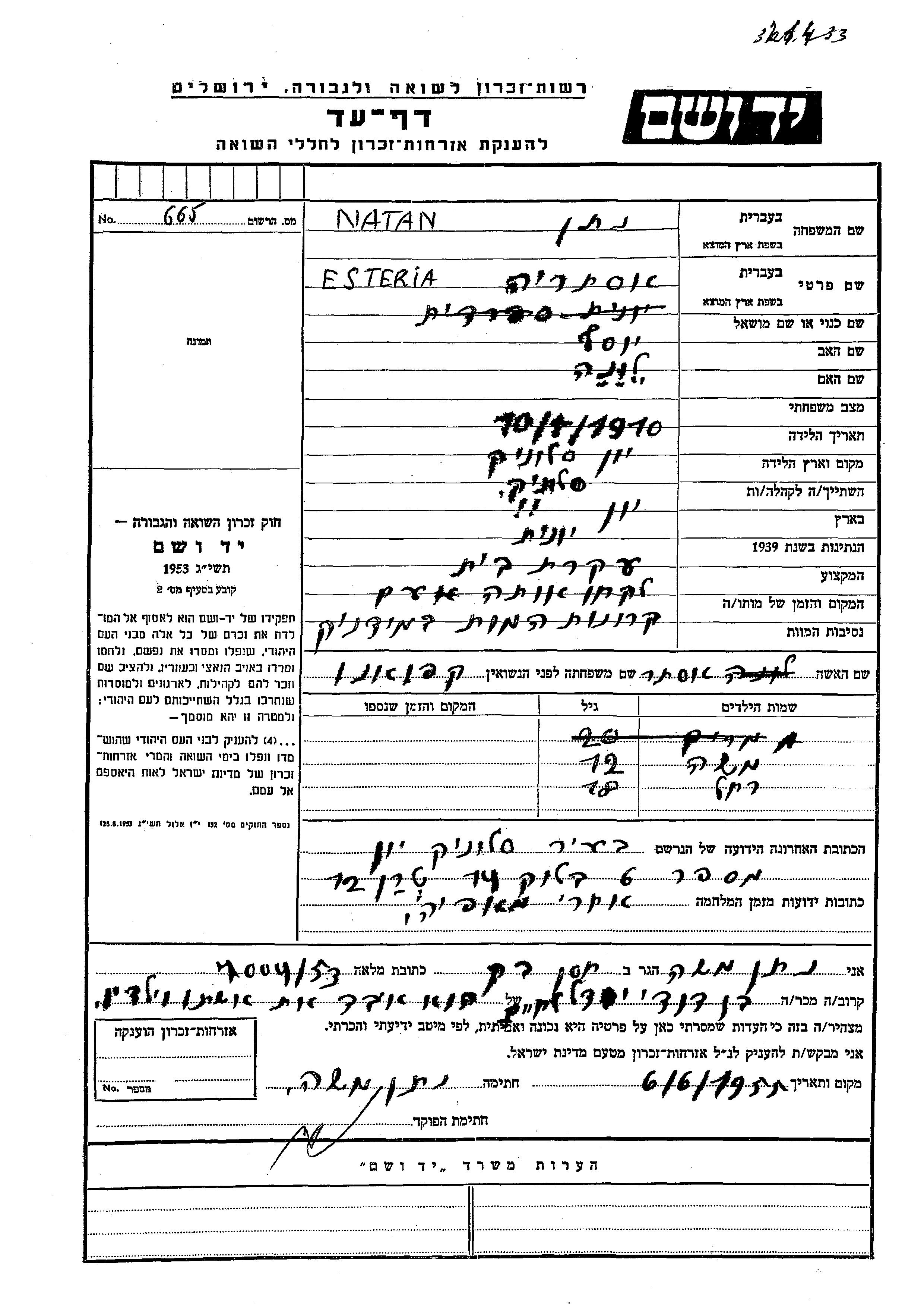Натан Рахель Салоники, Греция Лист свидетельских показаний