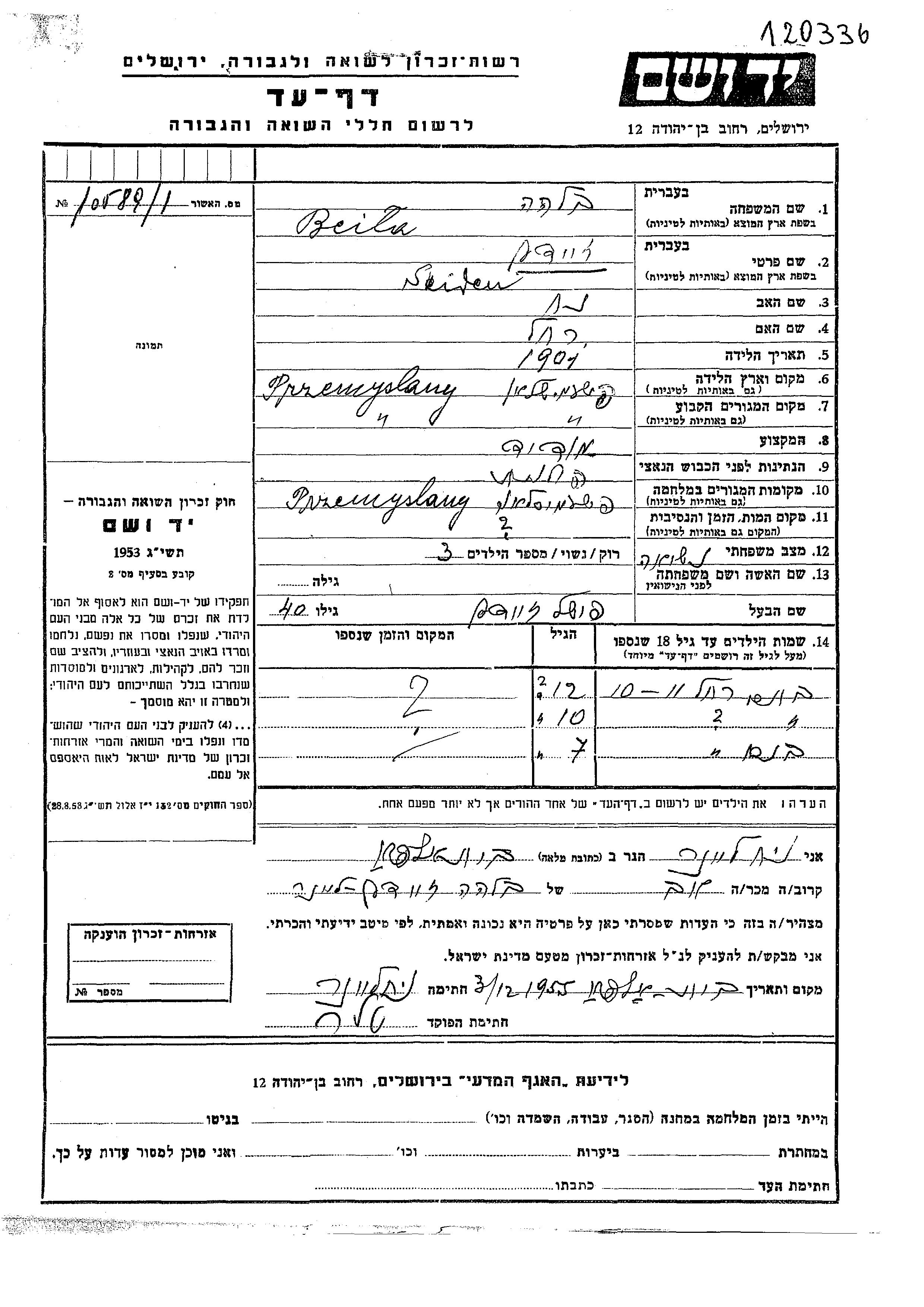 Зайден Зейдин Имя неизвестно Перемышляны, Польша Лист свидетельских показаний