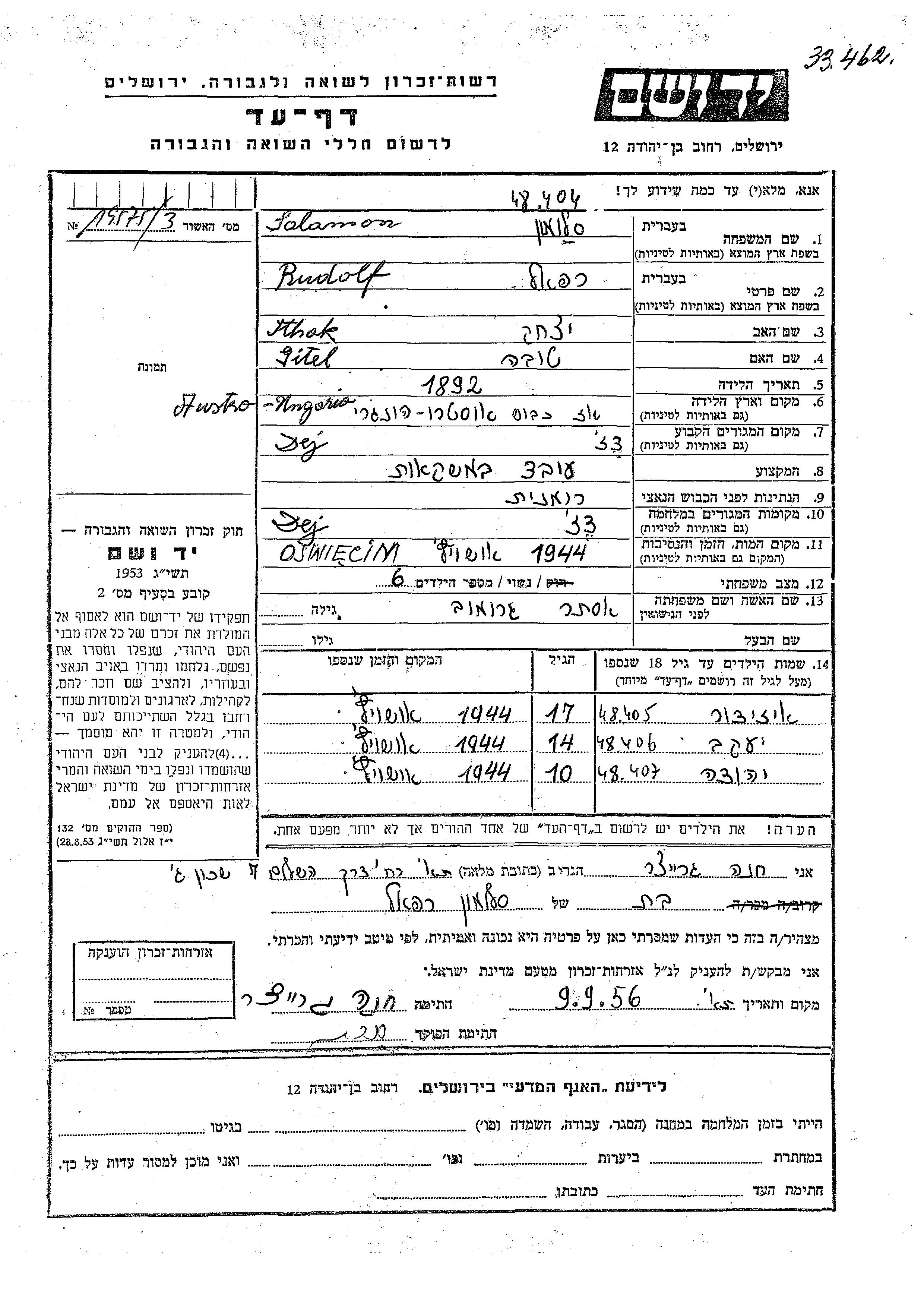 Яд Вашем - Листы свидетельских показаний Мемориального фонда