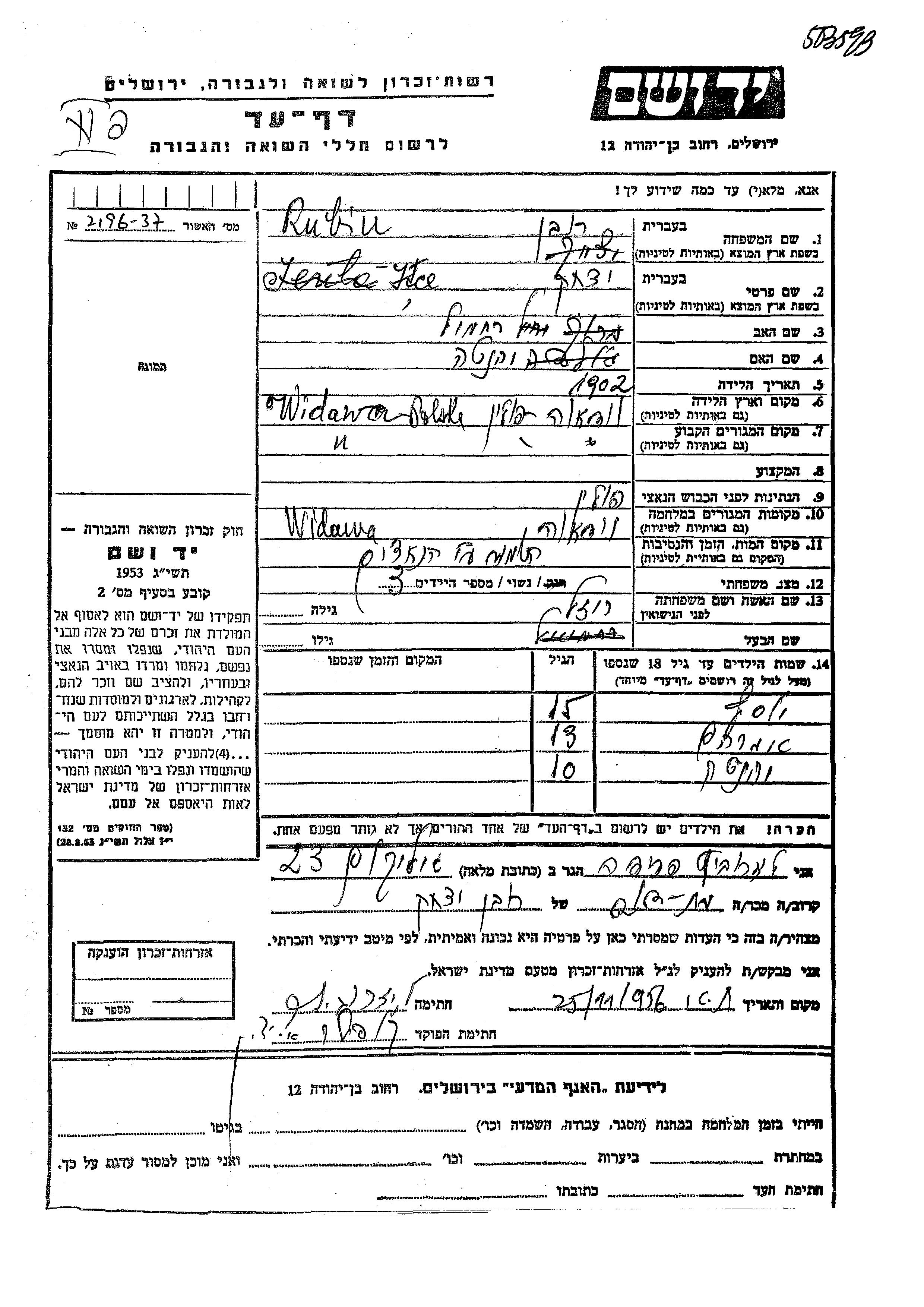 Яд Вашем - Листы свидетельских показаний Мемориального фонда