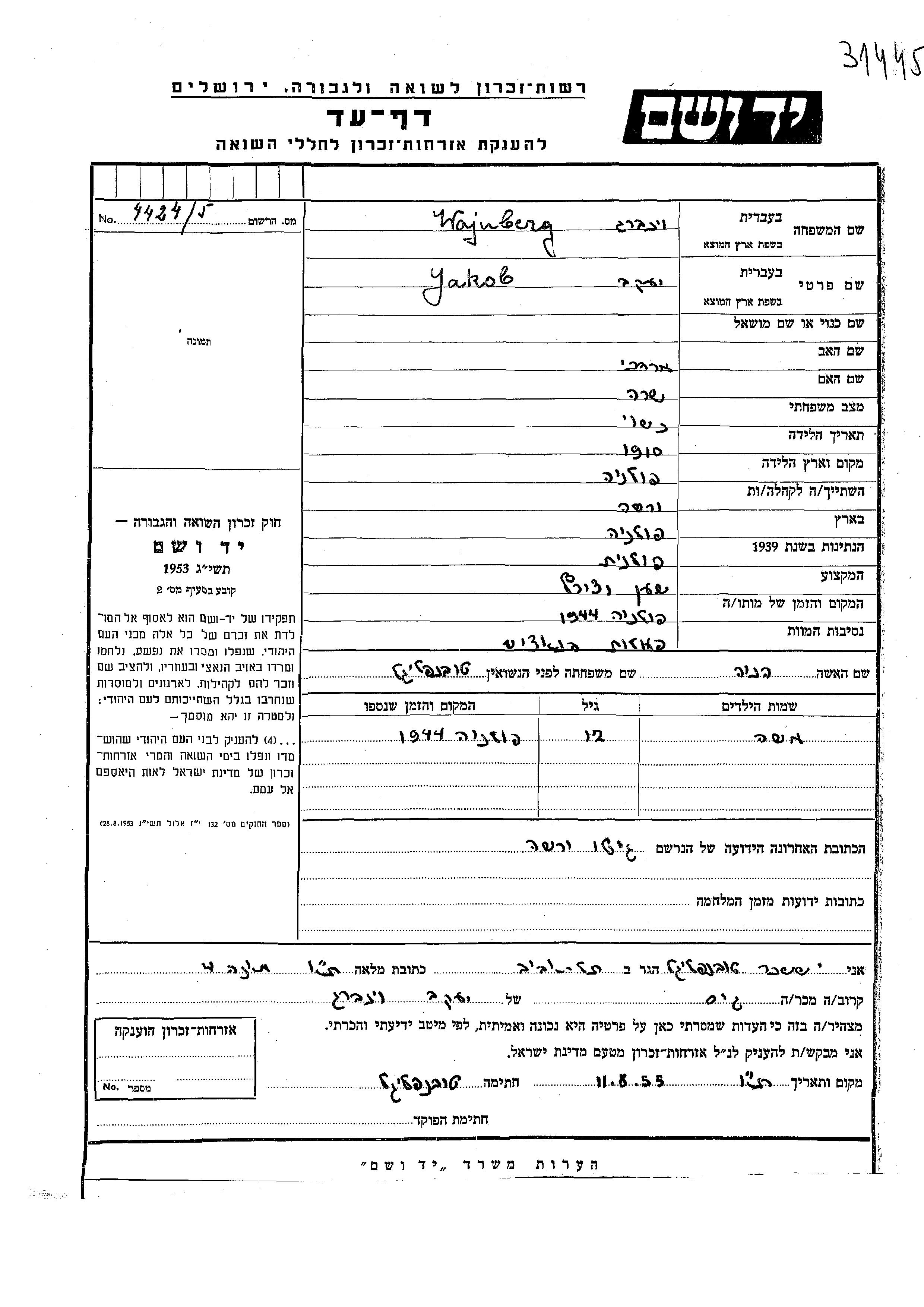 Вайнберг Моше Варшава, Польша Лист свидетельских показаний