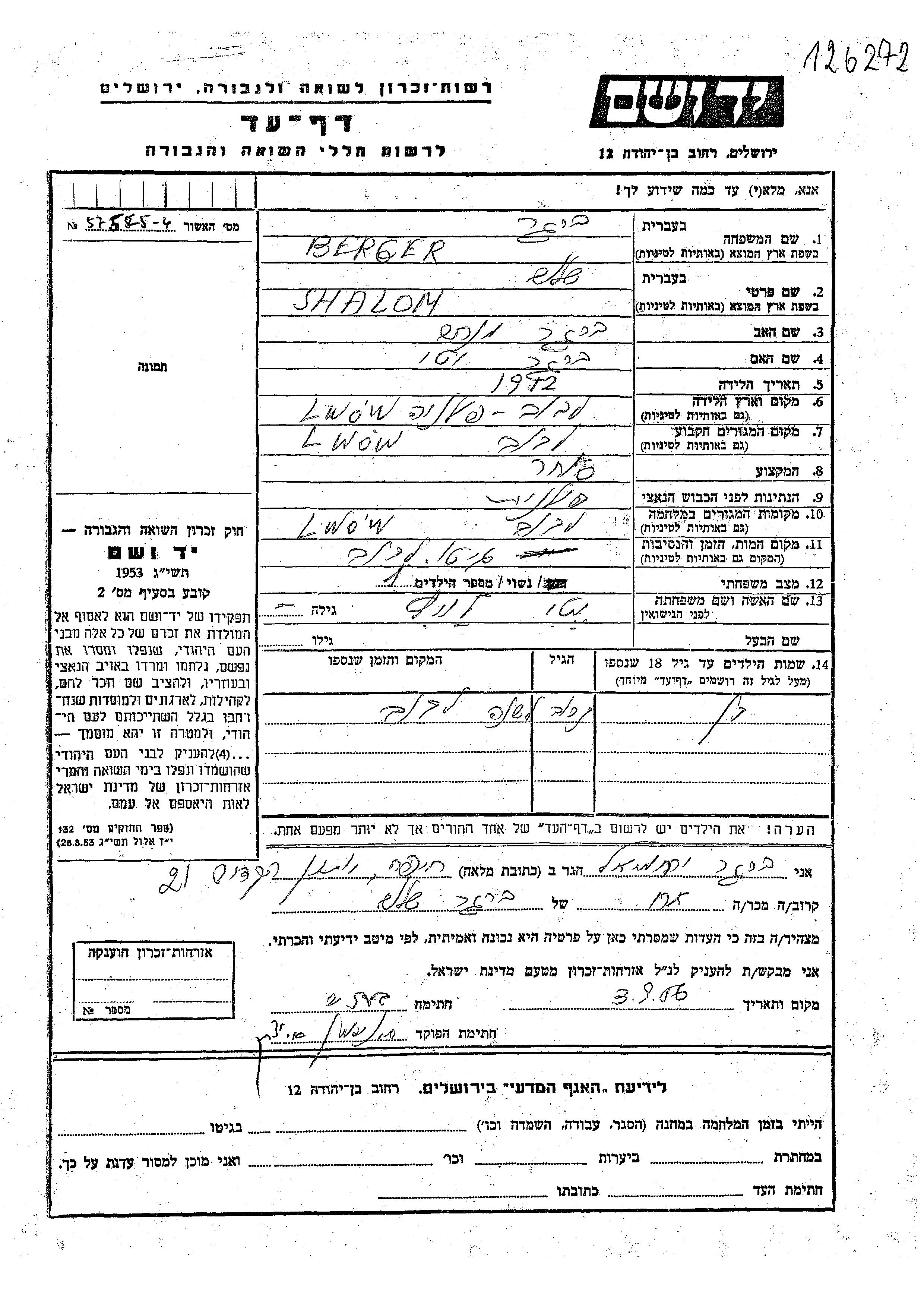 Дан Бергер Шалом Ети девичья фамилия Левиц. Ребенок. Место жительства до войны: Львов, Польша. Место во время войны: Львов, Польша.