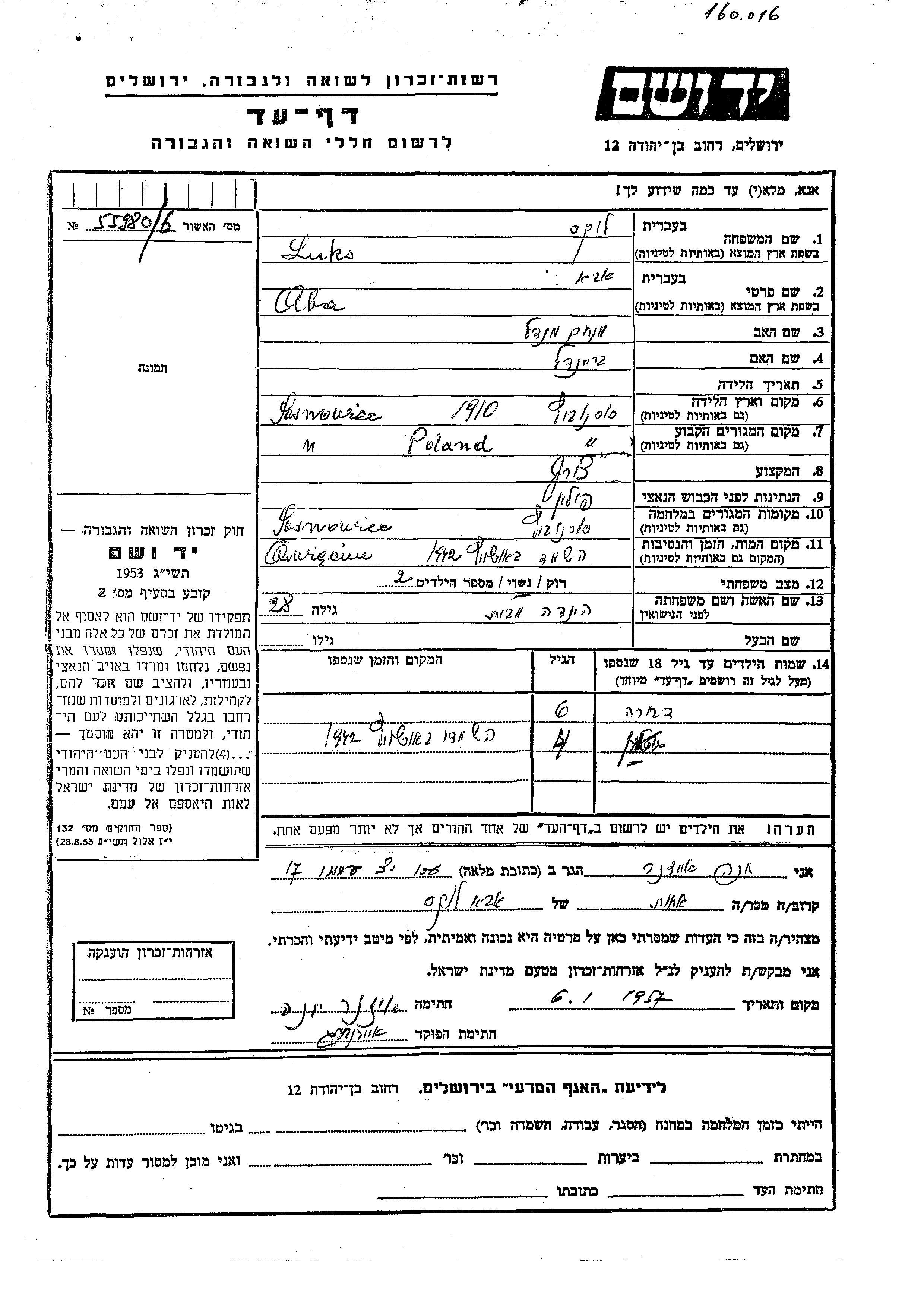 Яд Вашем - Листы свидетельских показаний Мемориального фонда