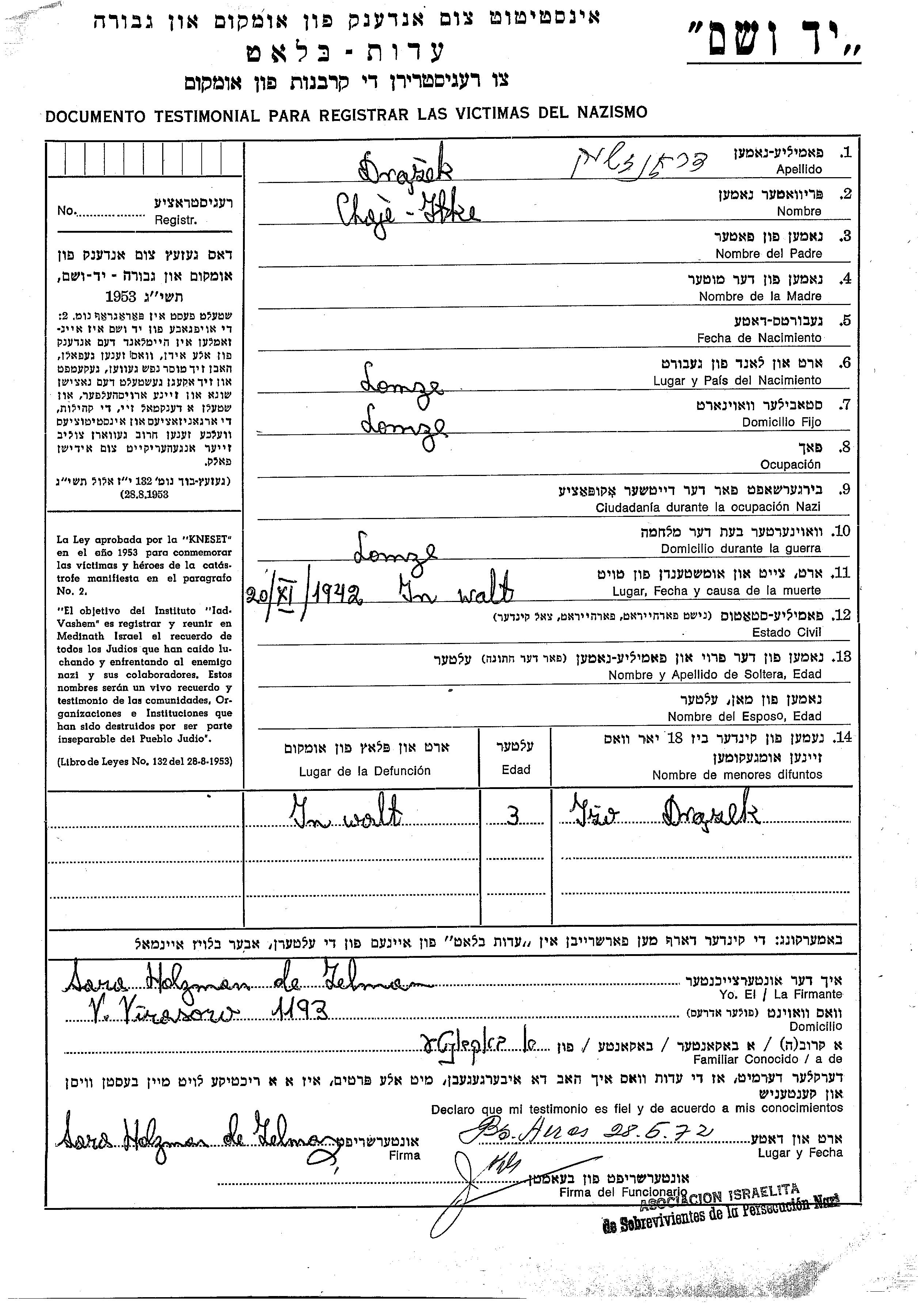Яд Вашем - Листы свидетельских показаний Мемориального фонда