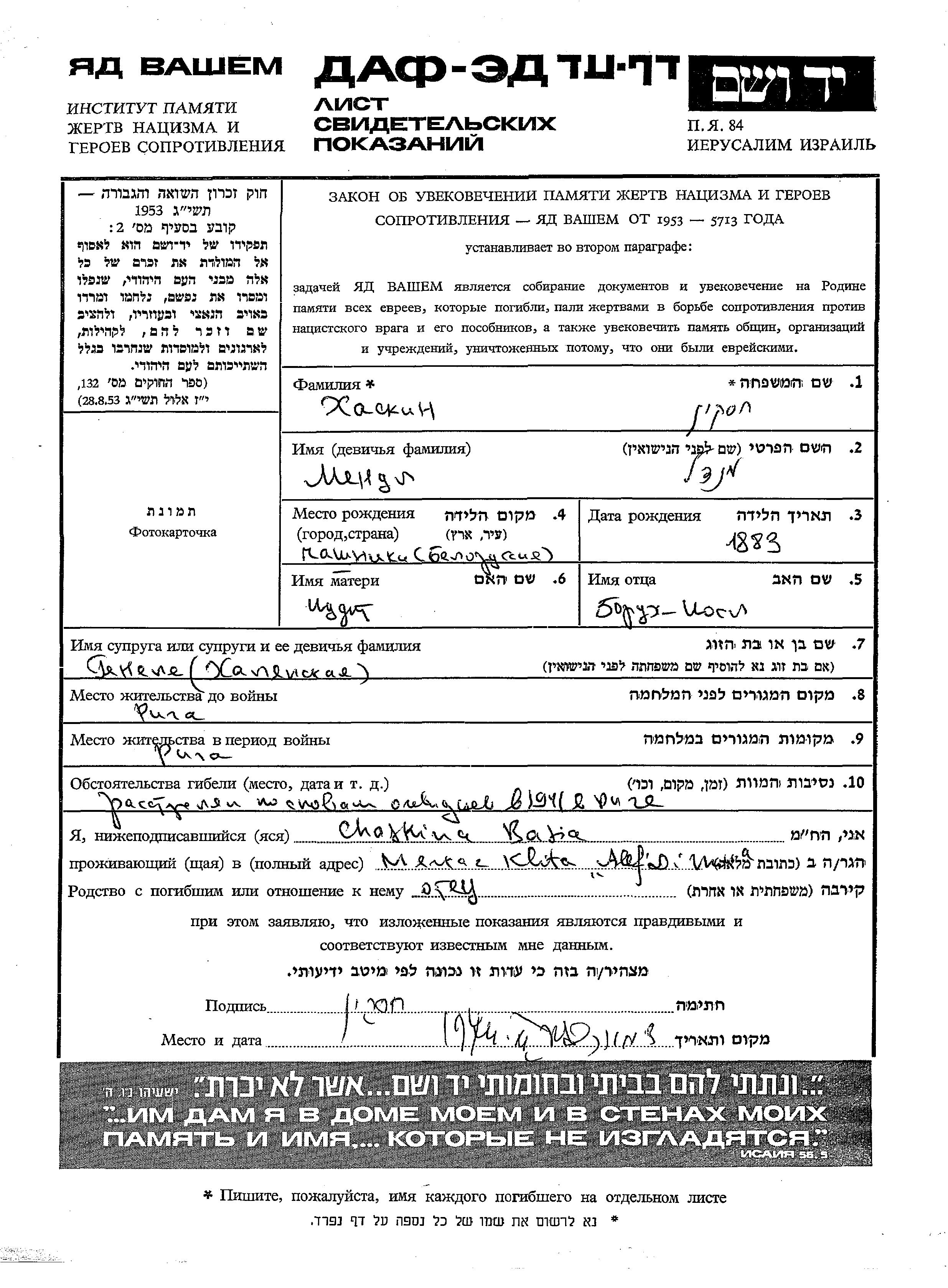Яд Вашем - Листы свидетельских показаний Мемориального фонда
