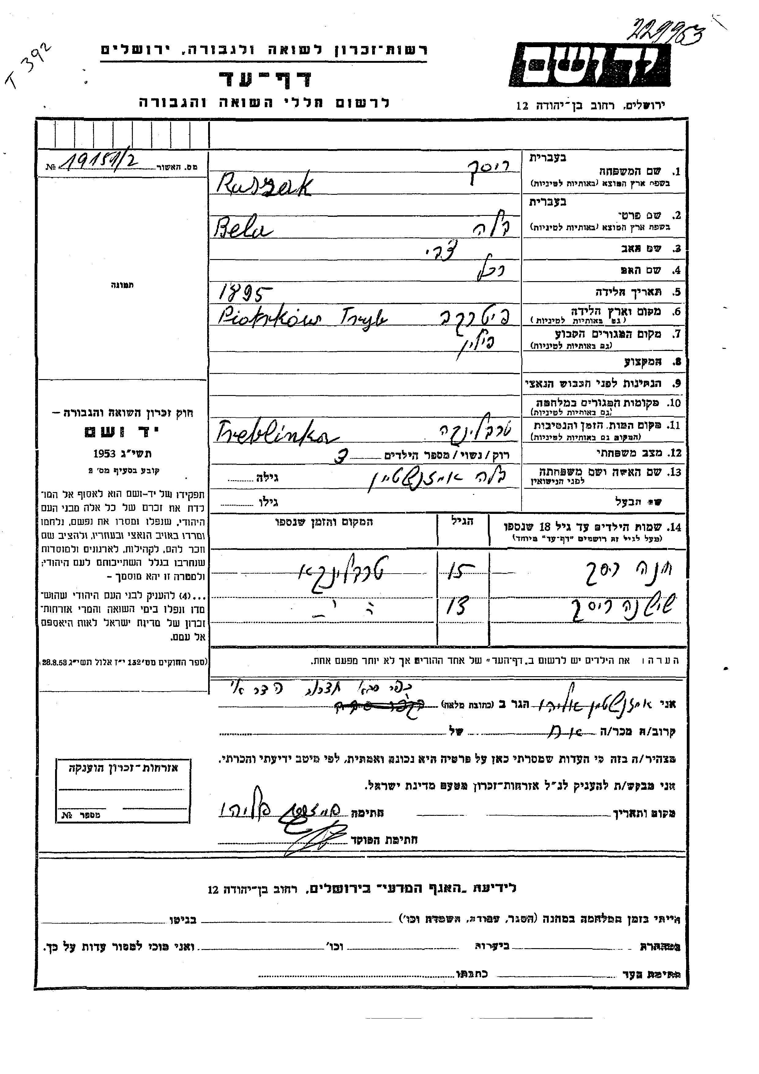 Яд Вашем - Листы свидетельских показаний Мемориального фонда
