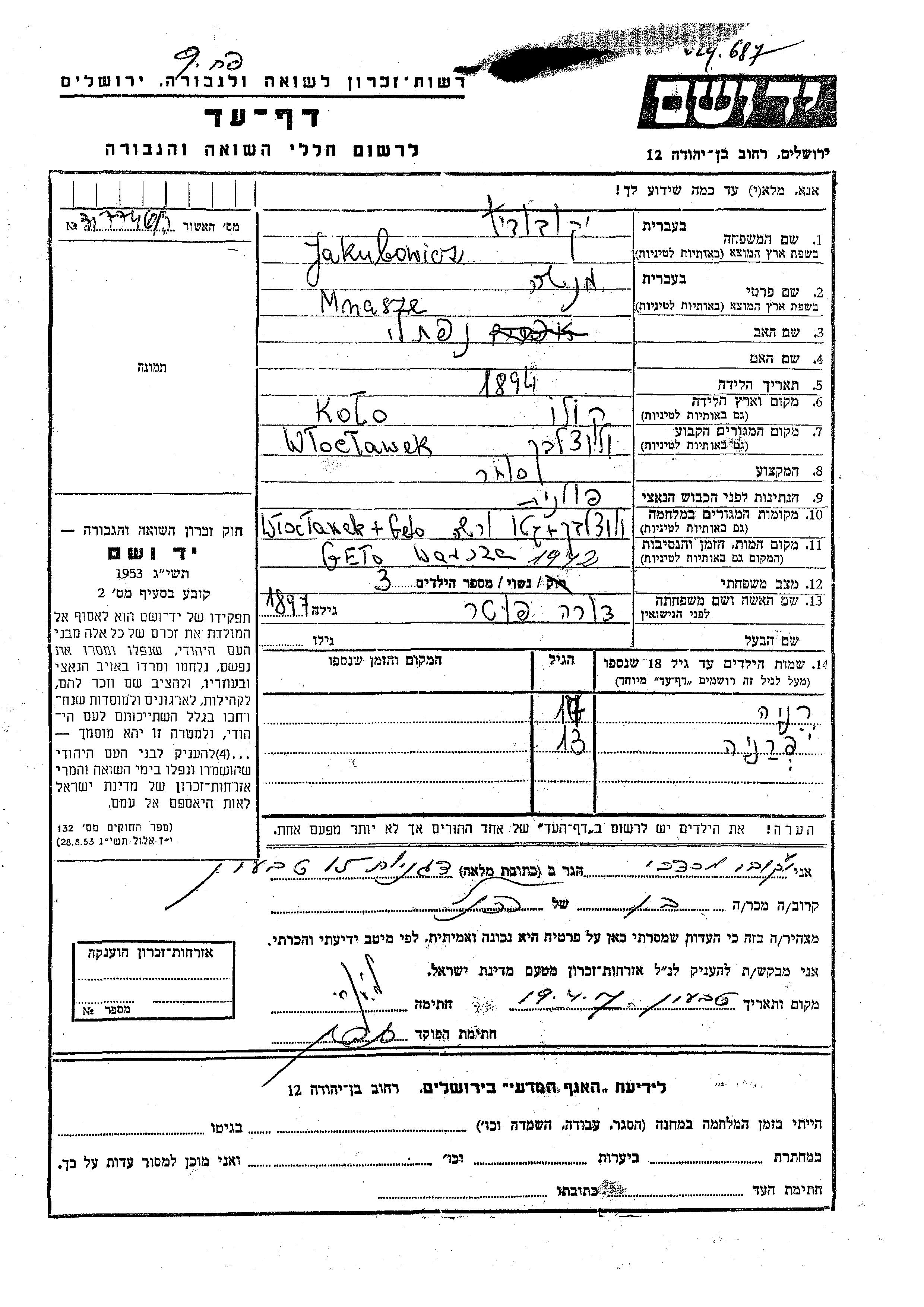 Якубович Реня Влоцлавек, Польша Лист свидетельских показаний