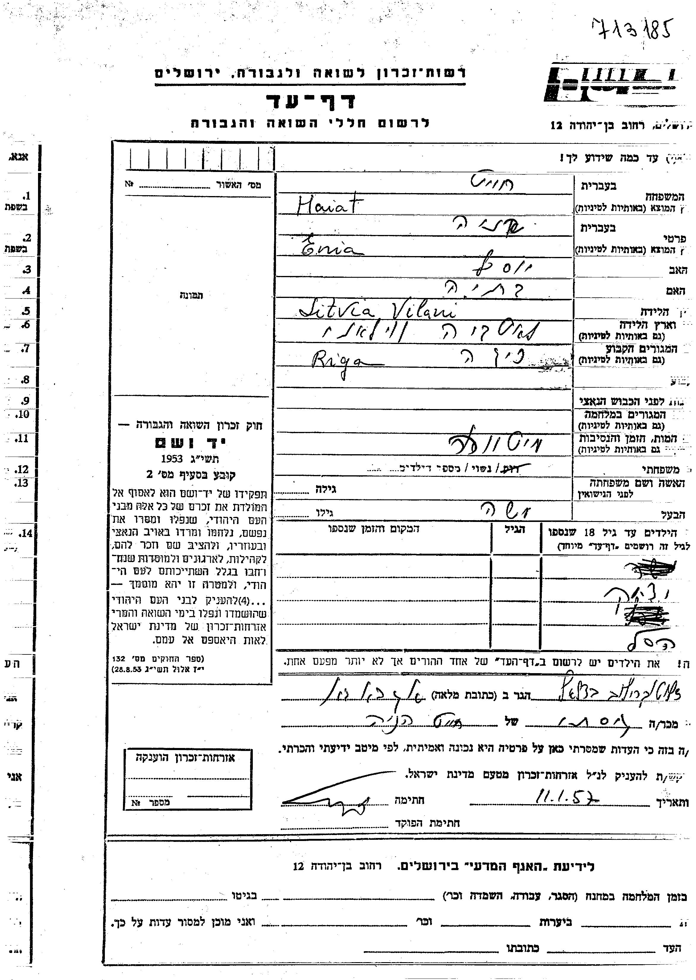Хаят Ицхак Рига, Латвия Лист свидетельских показаний