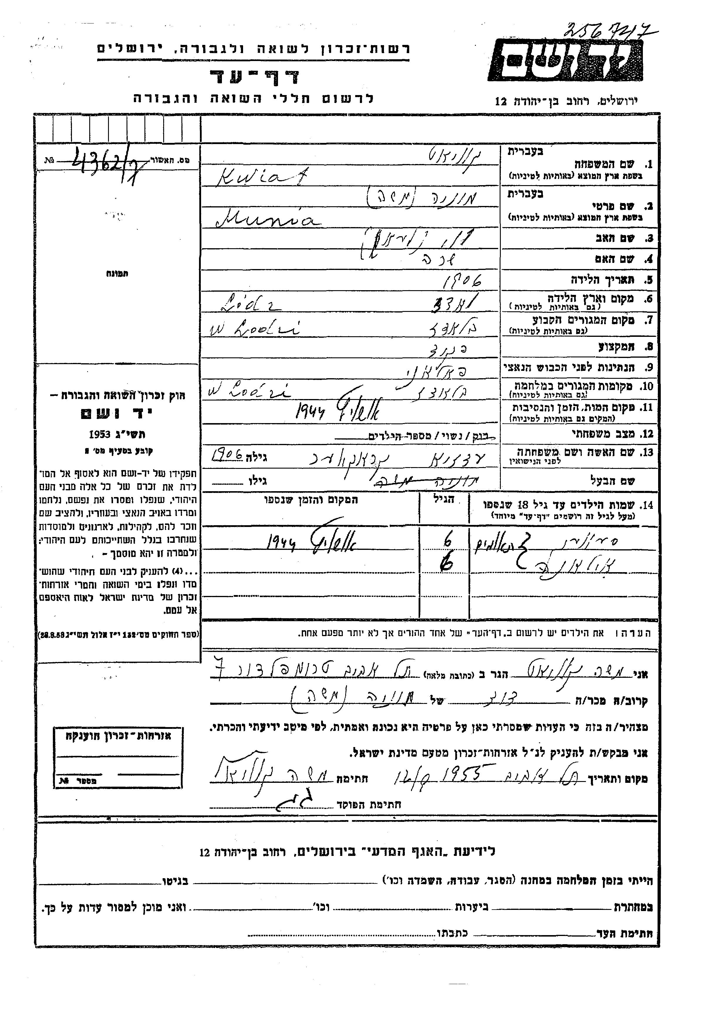 Яд Вашем - Листы свидетельских показаний Мемориального фонда