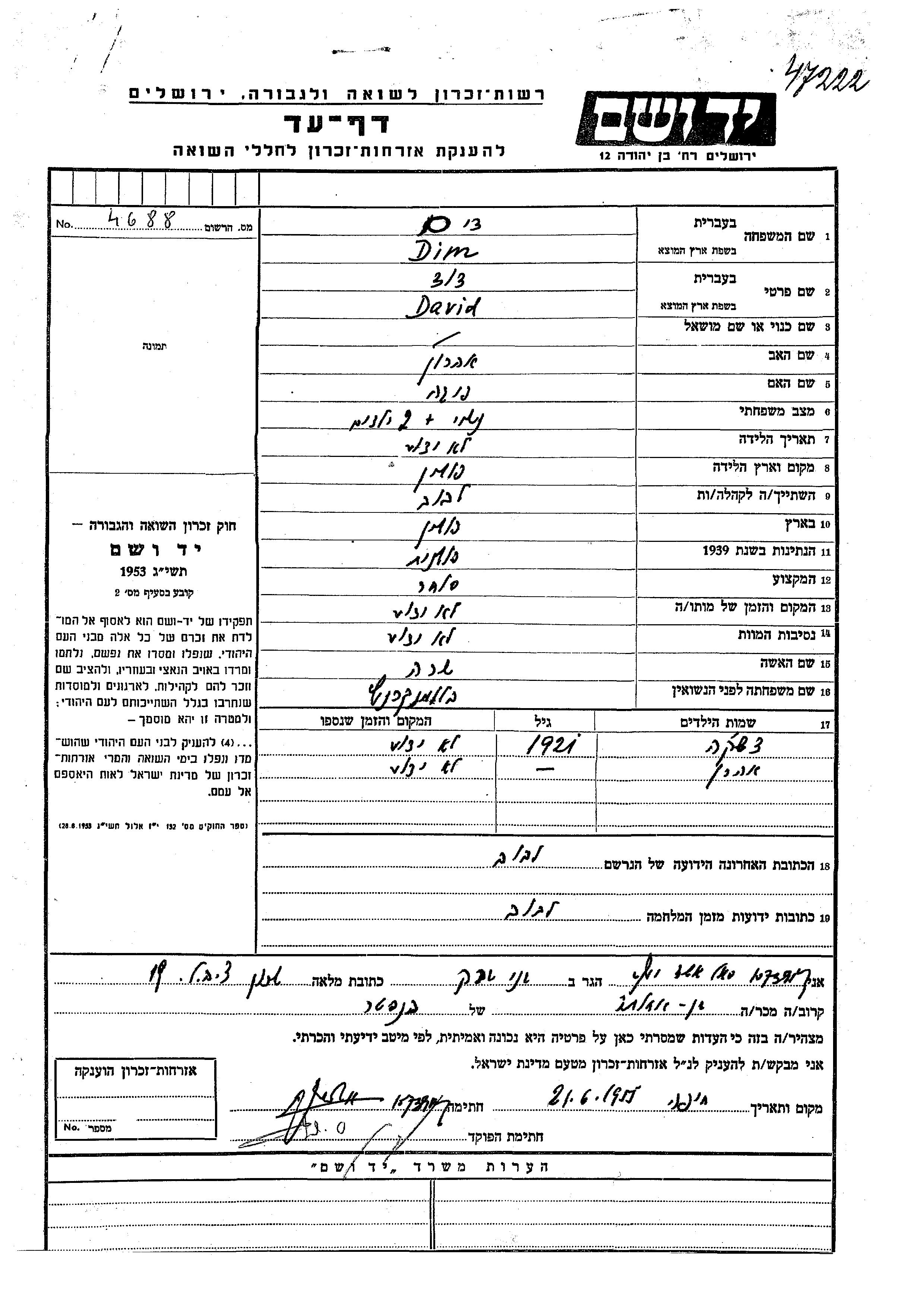 Яд Вашем - Листы свидетельских показаний Мемориального фонда