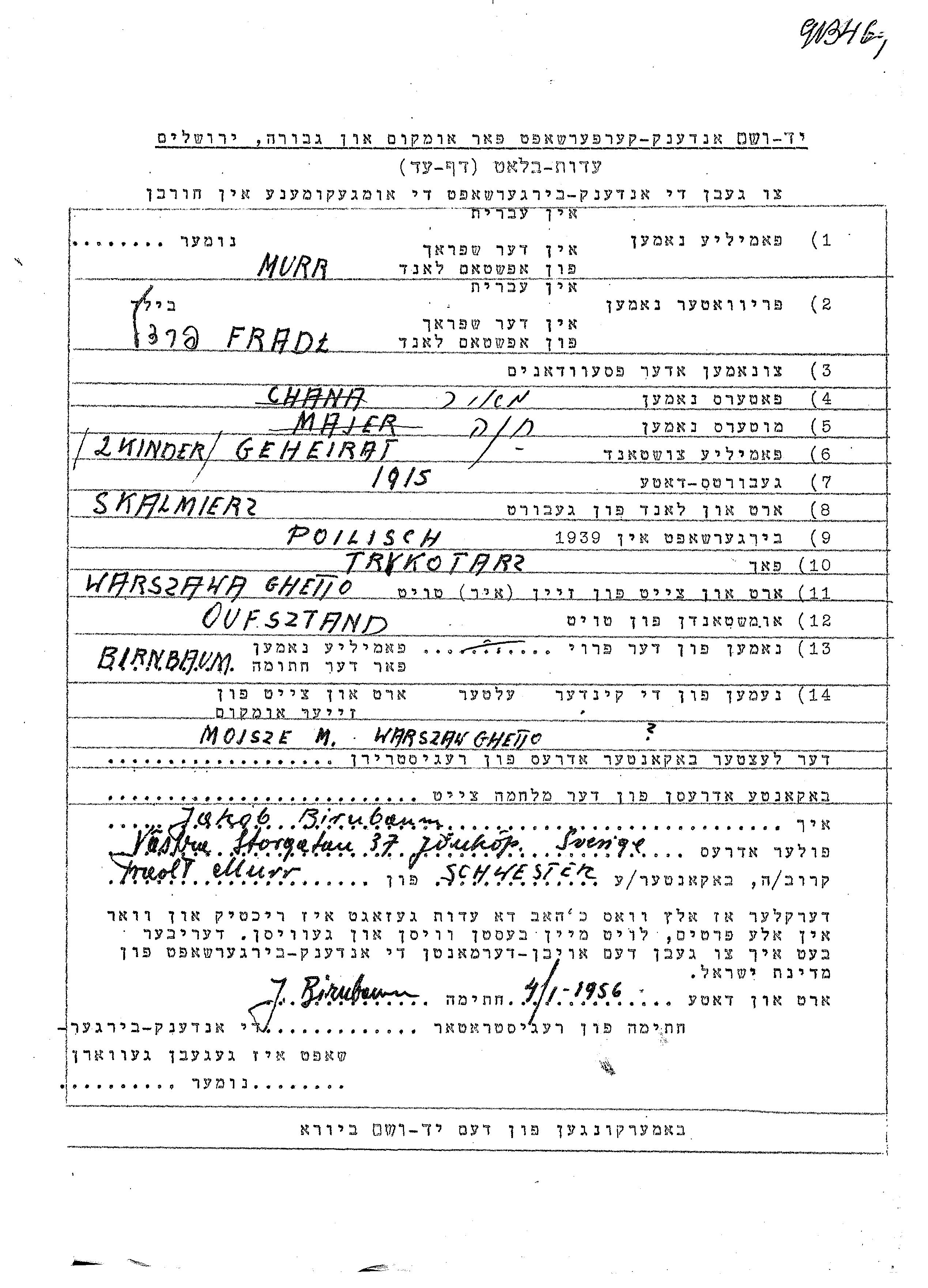 Мурр Мойше М место не указано, Лист свидетельских показаний