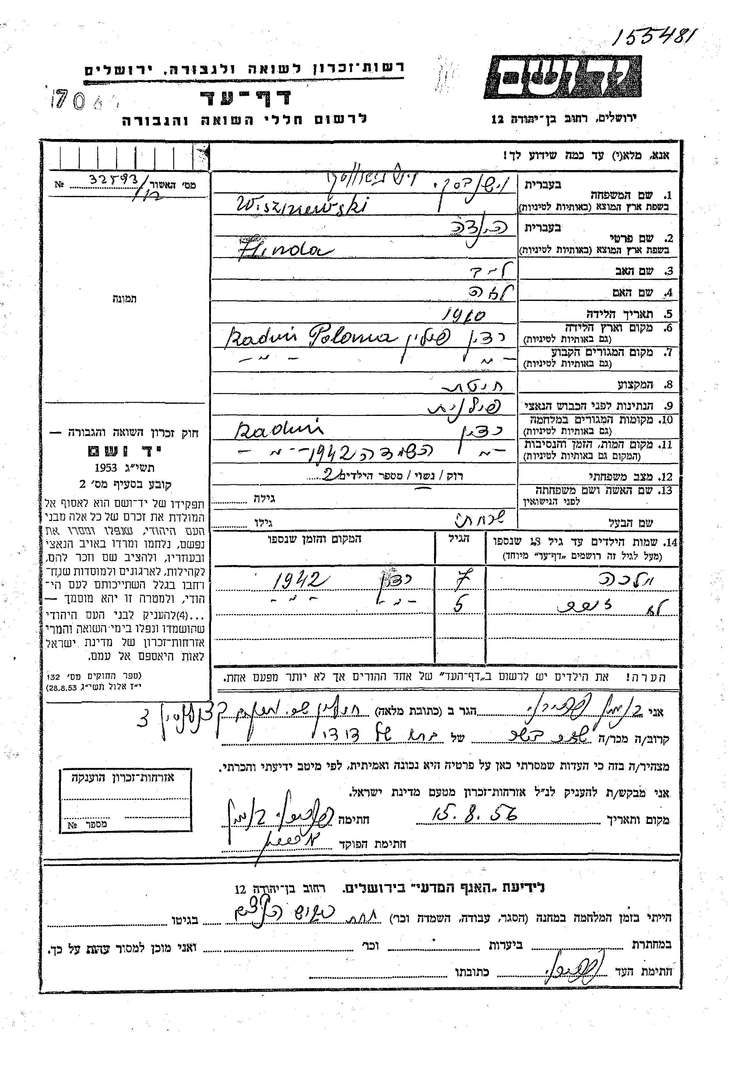 Яд Вашем - Листы свидетельских показаний Мемориального фонда