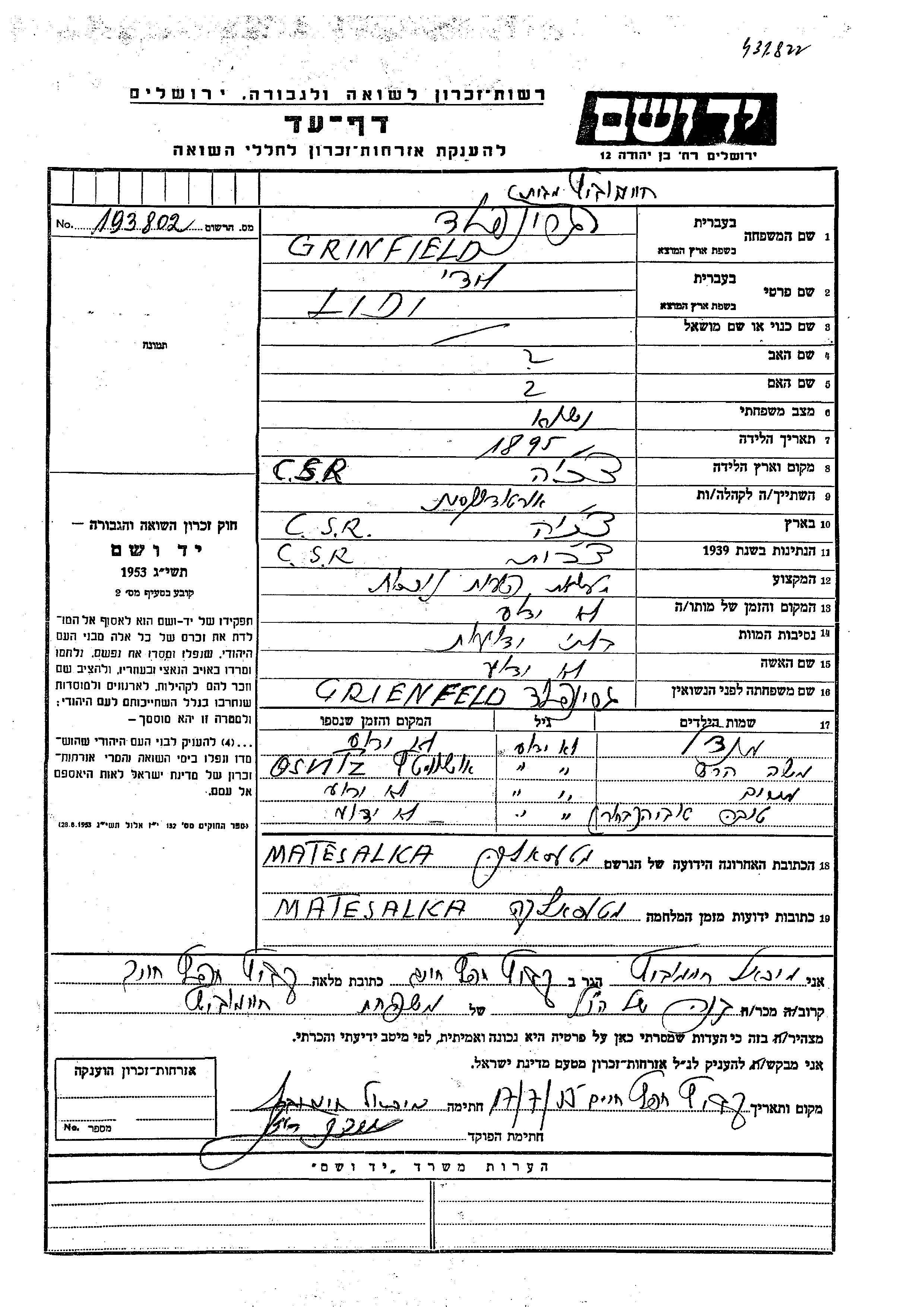 Яд Вашем - Листы свидетельских показаний Мемориального фонда