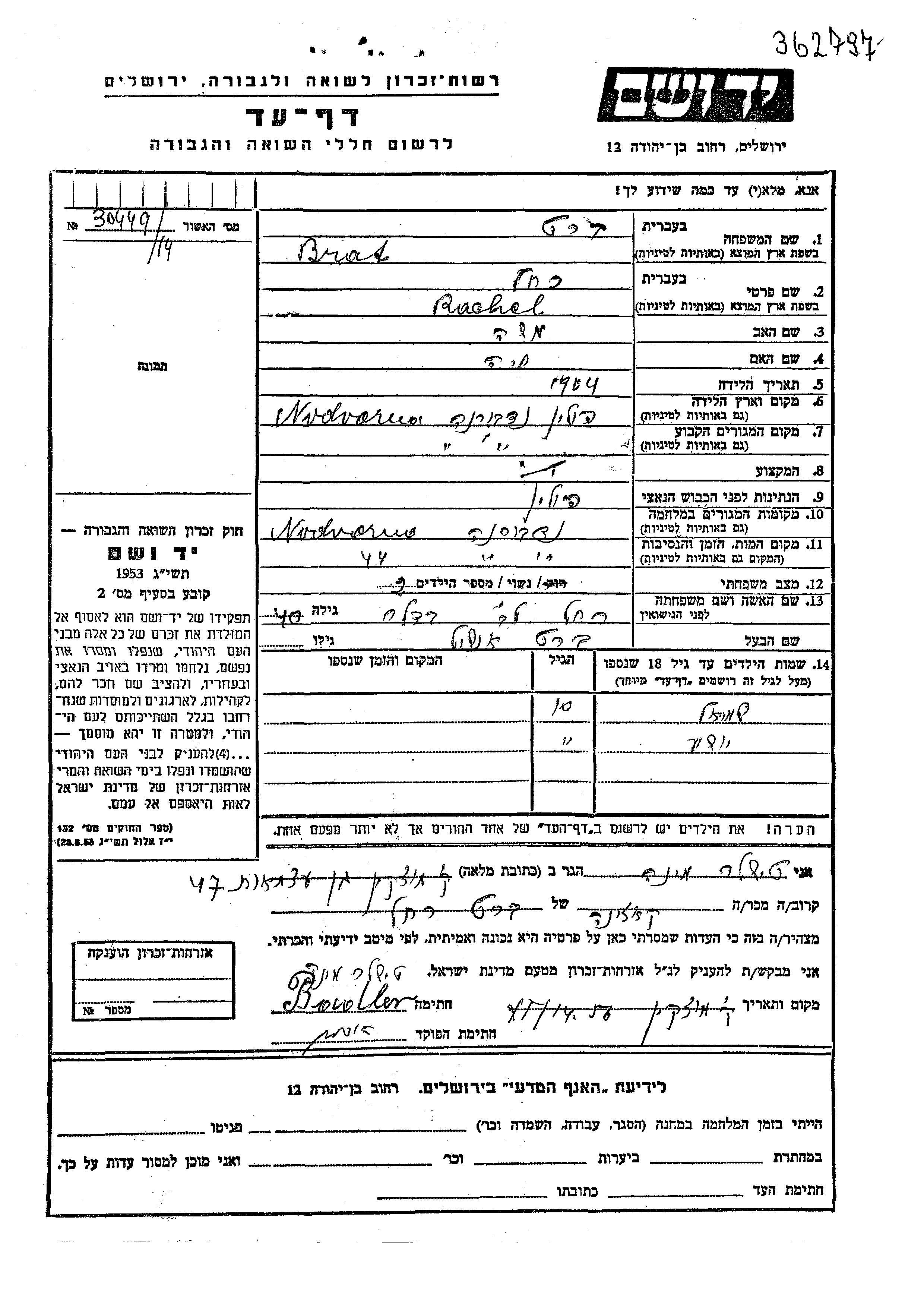 Брат Ешуа Надворная, Польша Лист свидетельских показаний