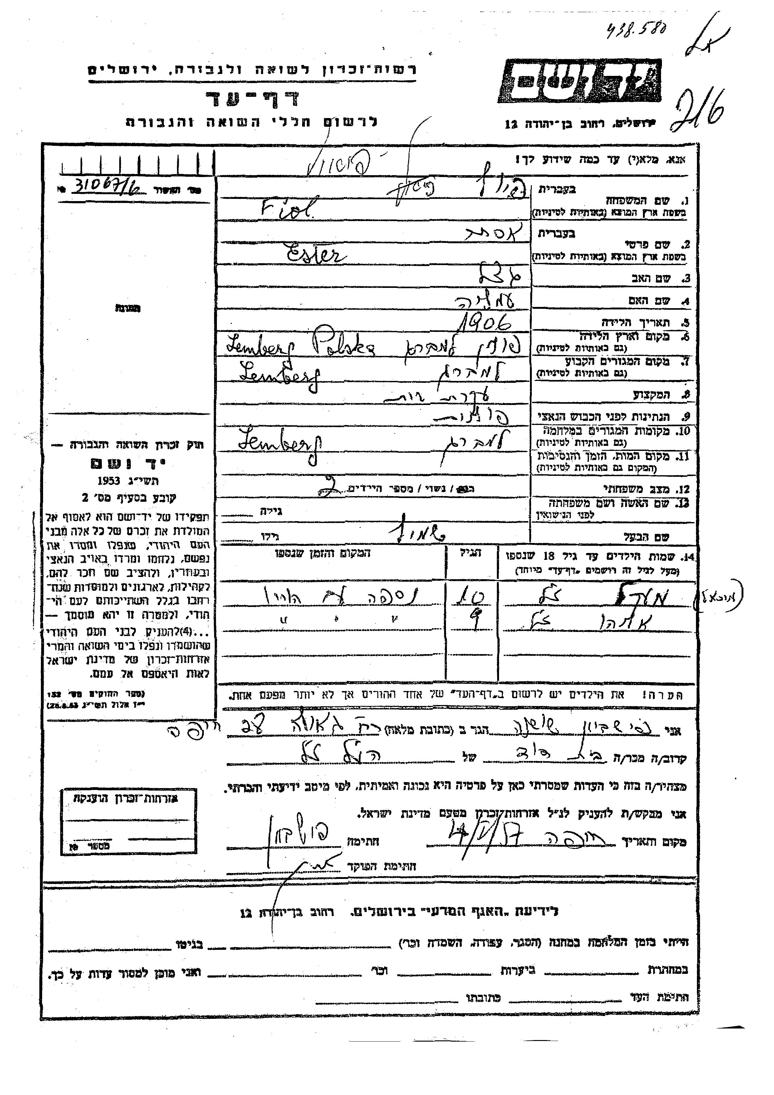 Яд Вашем - Листы свидетельских показаний Мемориального фонда