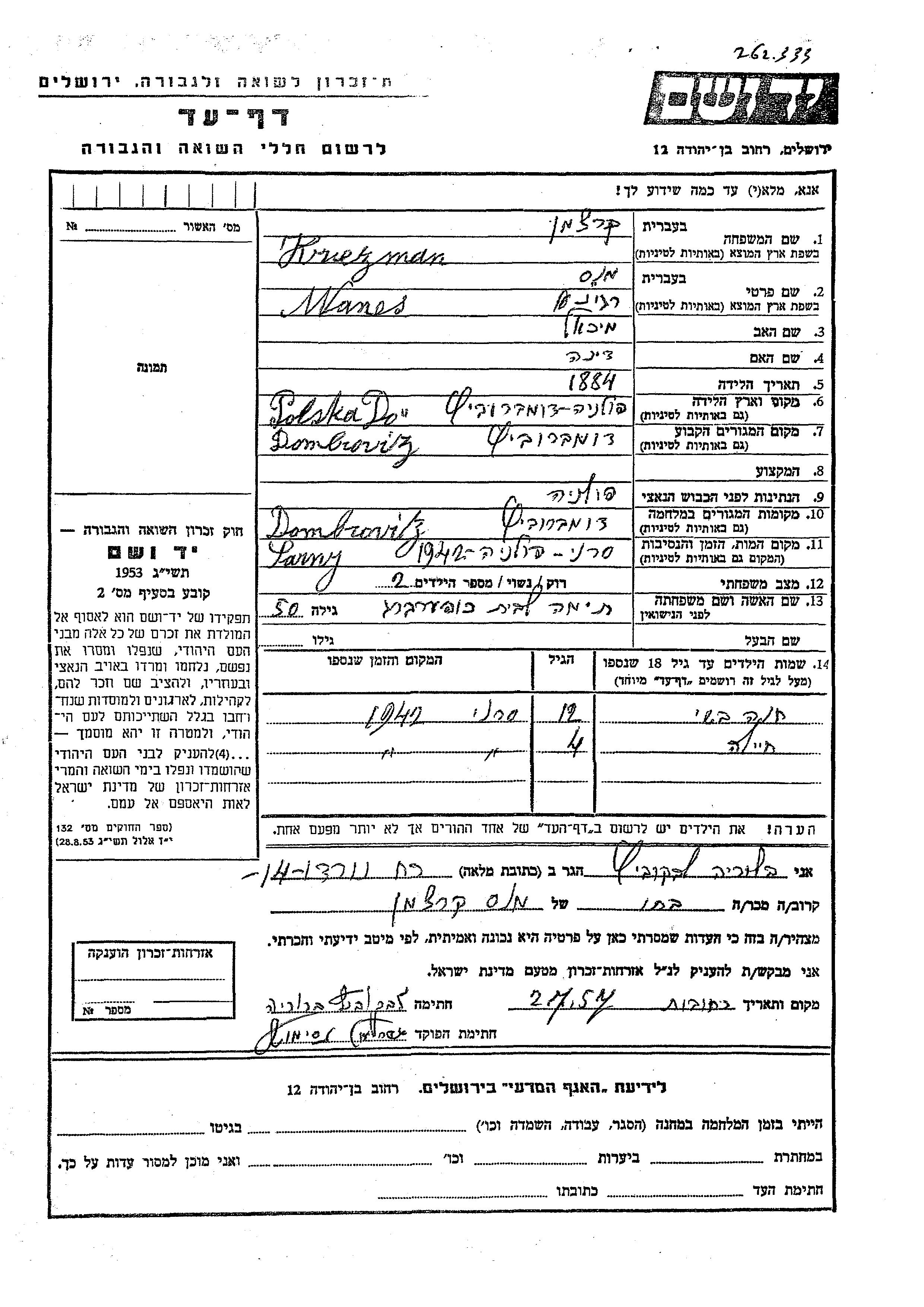 Яд Вашем - Листы свидетельских показаний Мемориального фонда