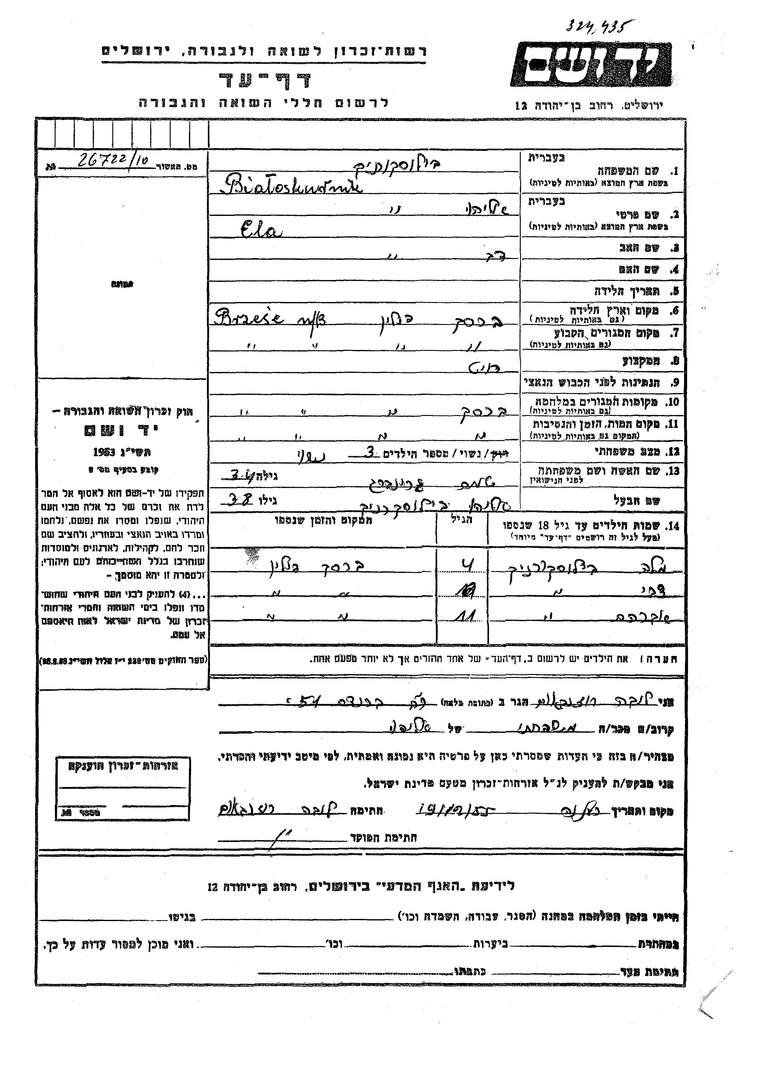 Бялоскурник Цви Брест Над Бугом, Польша Лист свидетельских показаний
