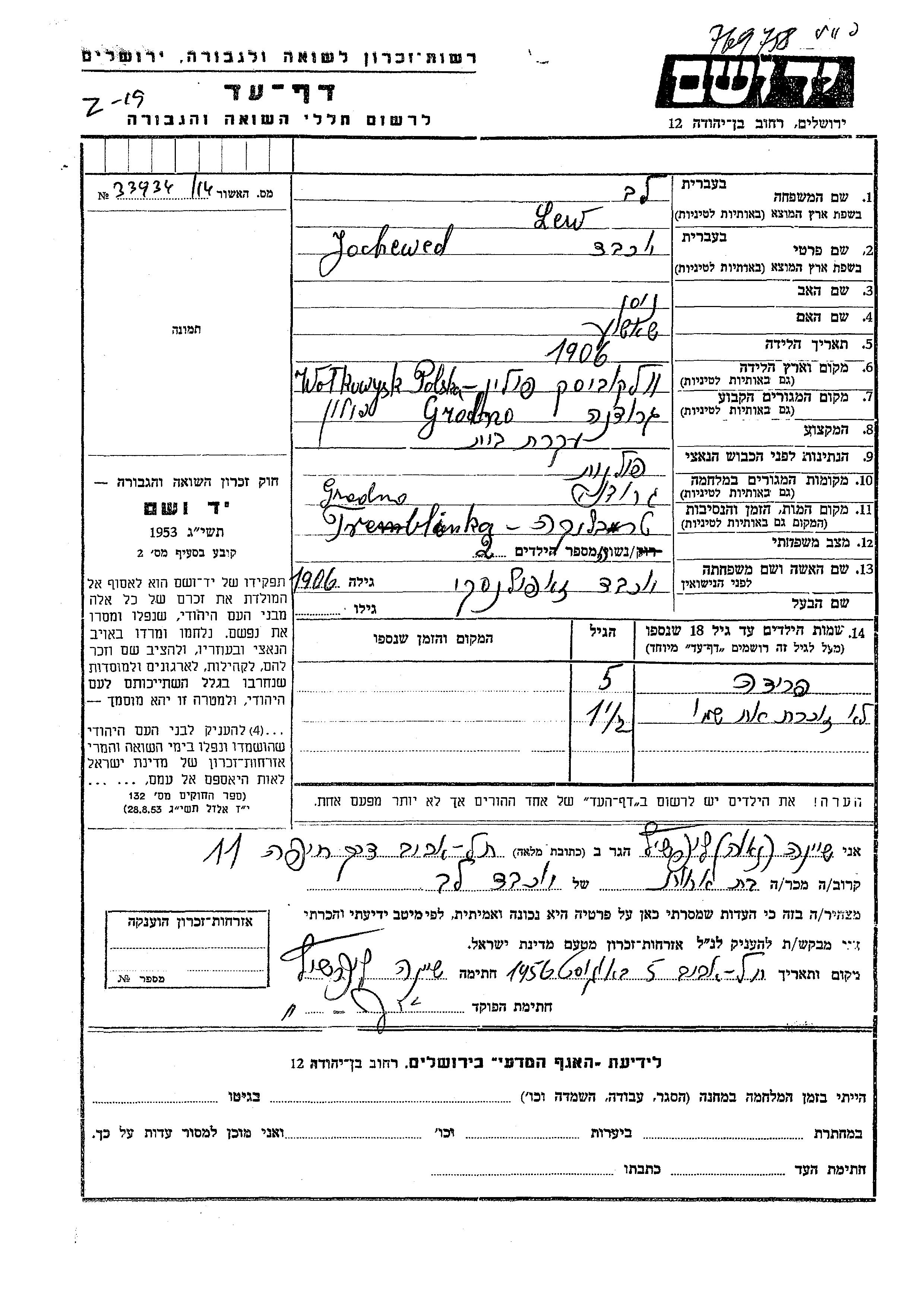 Яд Вашем - Листы свидетельских показаний Мемориального фонда