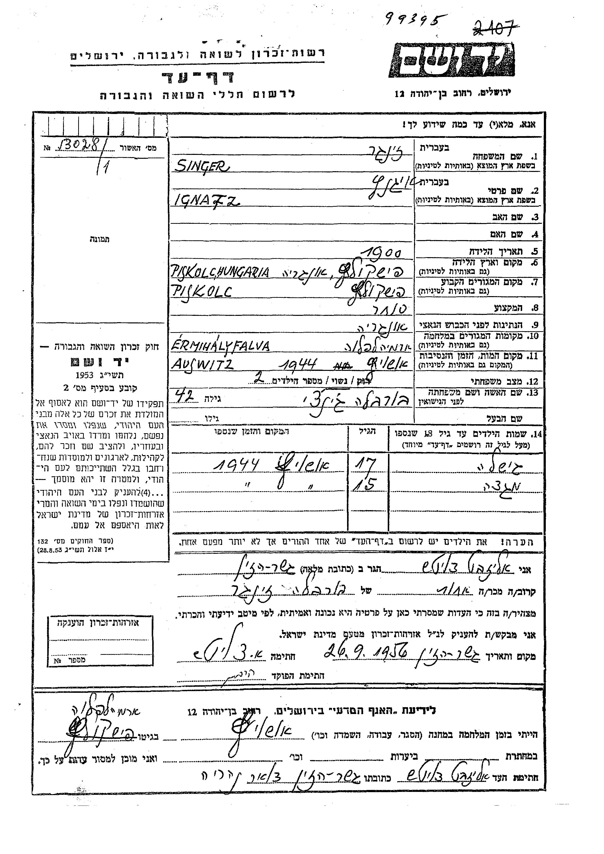 Магда Зингер Игнац Борбала девичья фамилия Гинци. Ребенок. Место жительства до войны: Пишколц, Румыния. Место во время войны: Эрмихайфальва, Румыния.