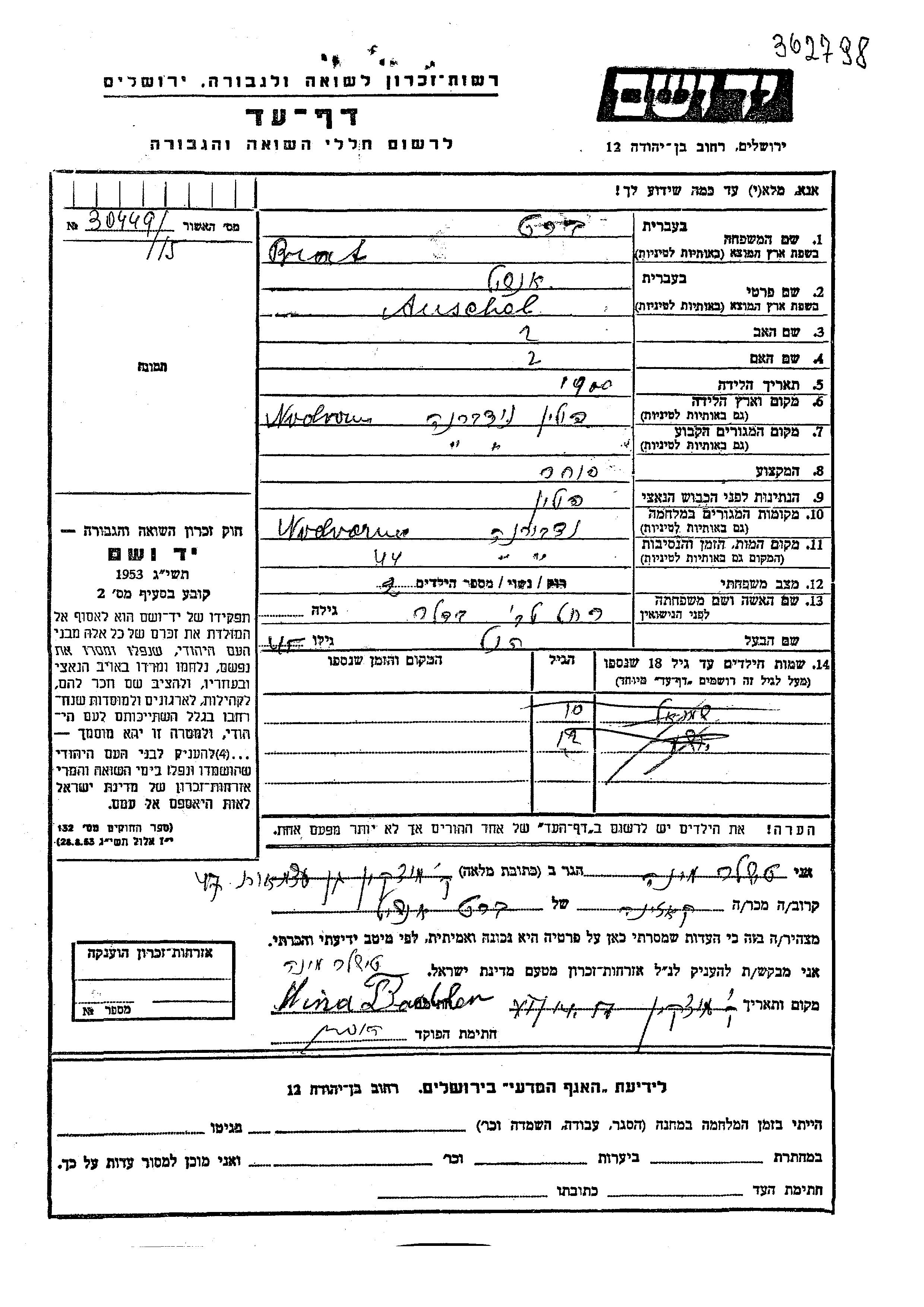 Поиск подателя Листа свидетельских показаний. Поиск по любому имени, включая уменьшительное или прозвище
