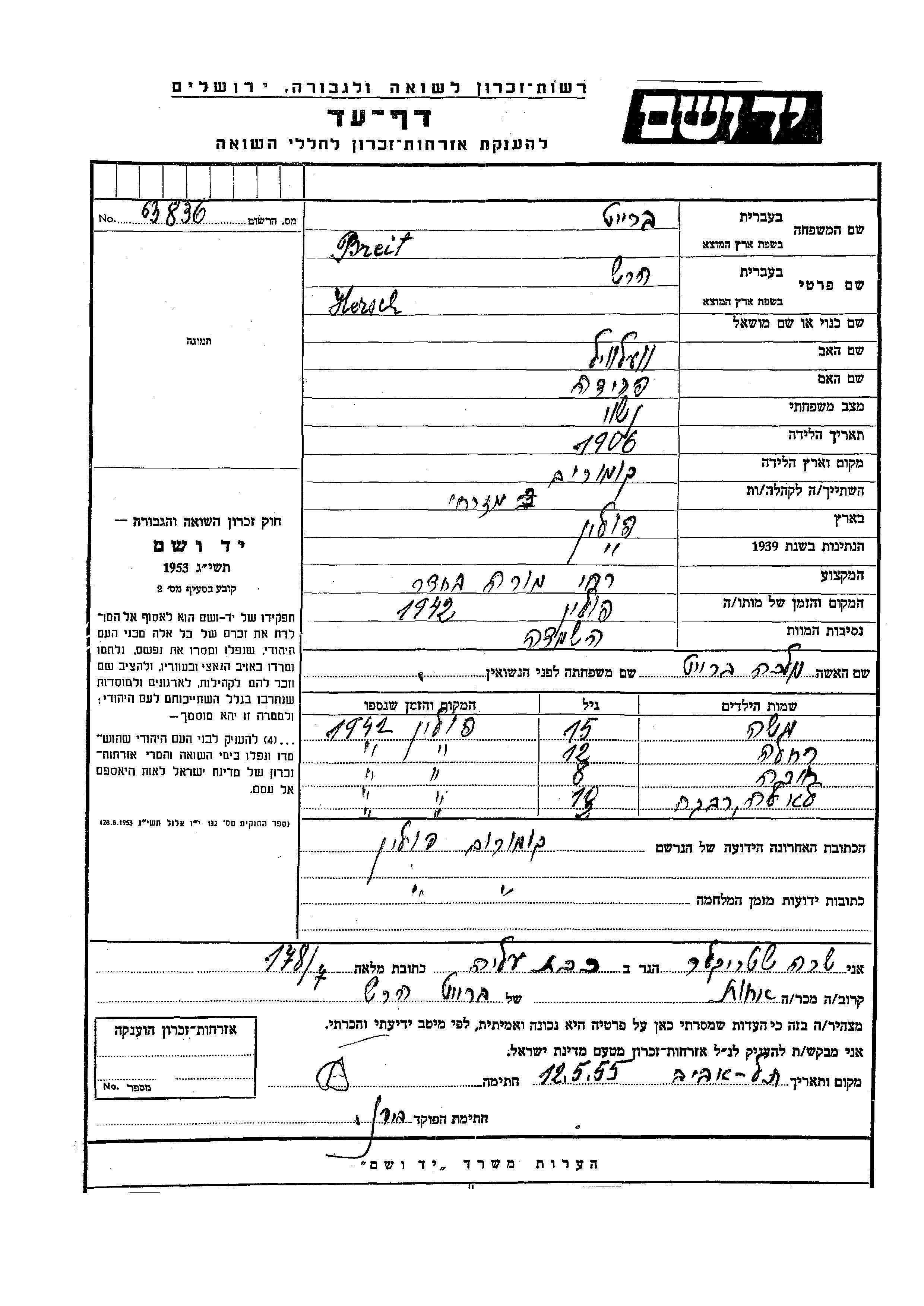 Яд Вашем - Листы свидетельских показаний Мемориального фонда