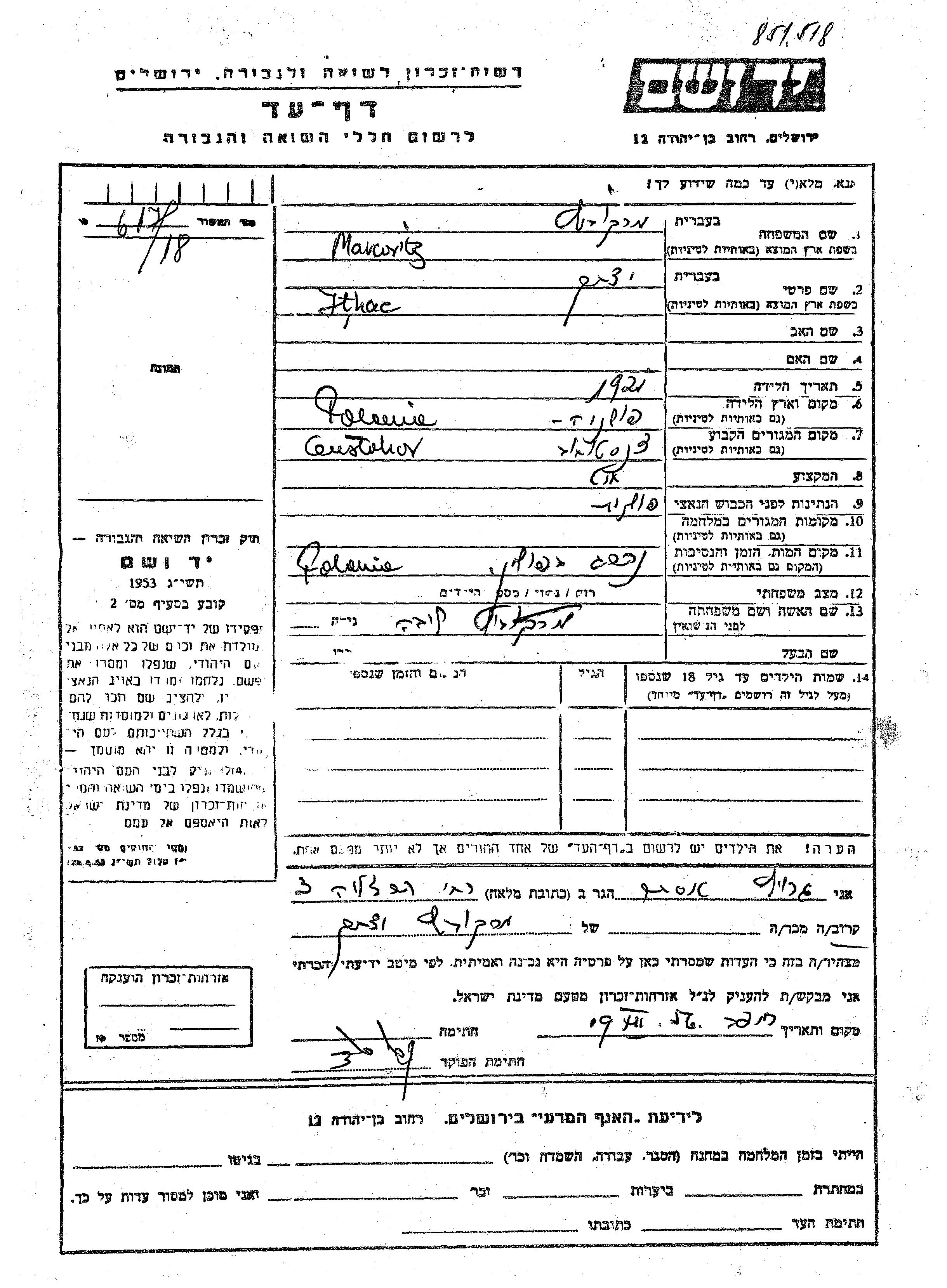 Яд Вашем - Листы свидетельских показаний Мемориального фонда