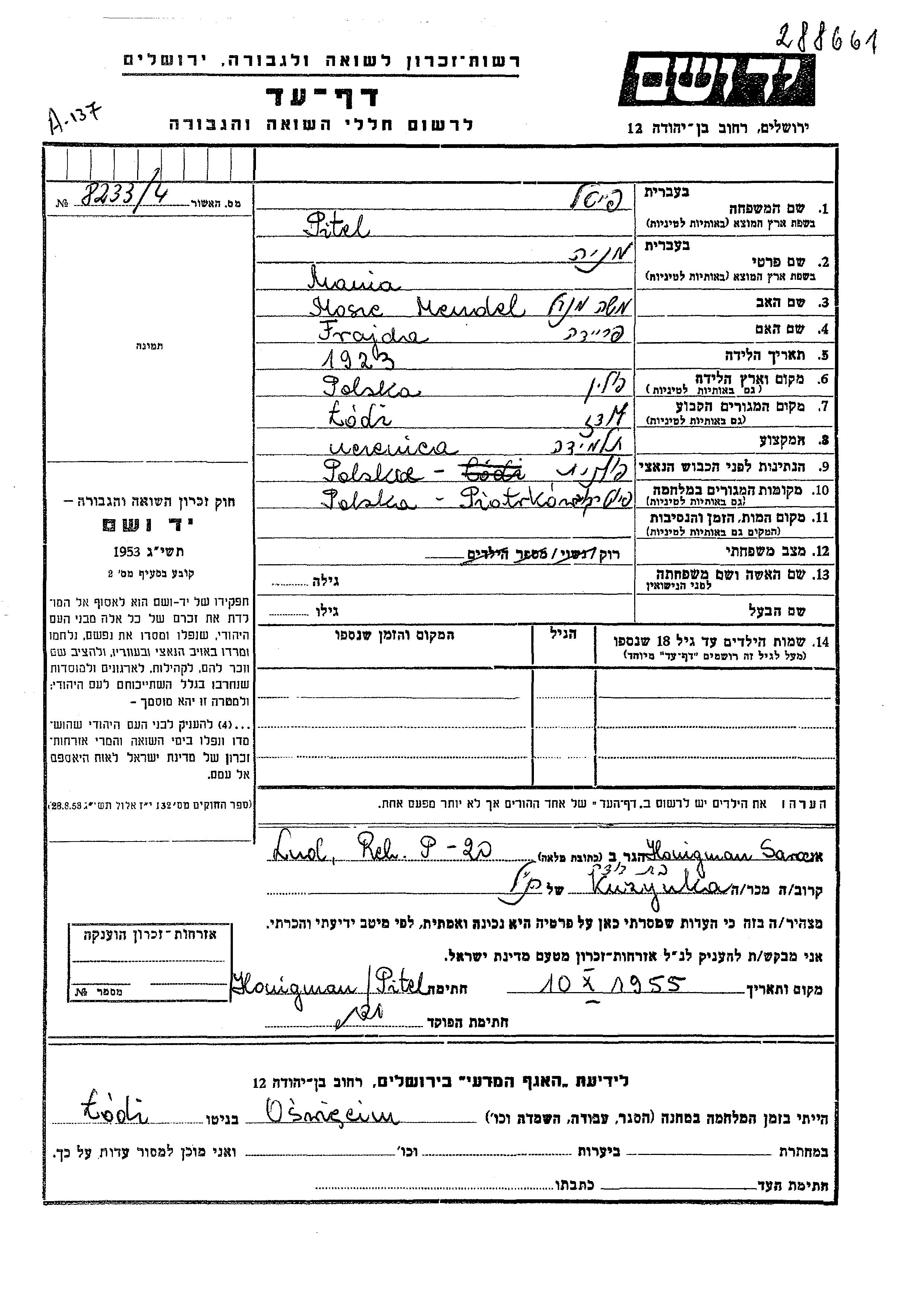 Яд Вашем - Листы свидетельских показаний Мемориального фонда