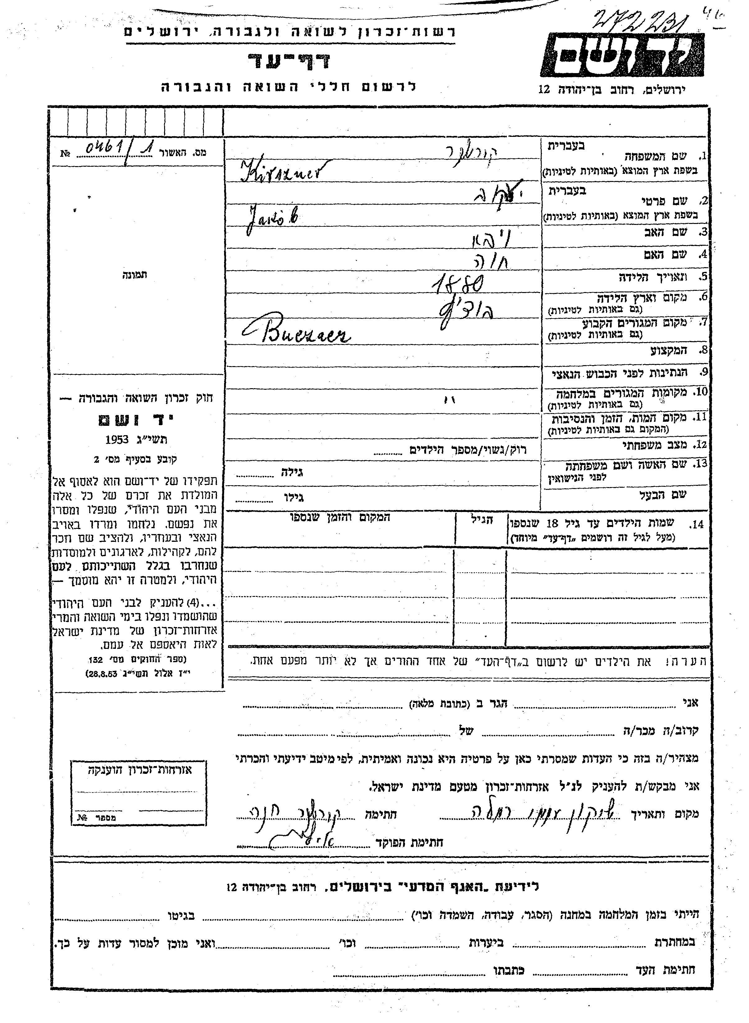 Яд Вашем - Листы свидетельских показаний Мемориального фонда