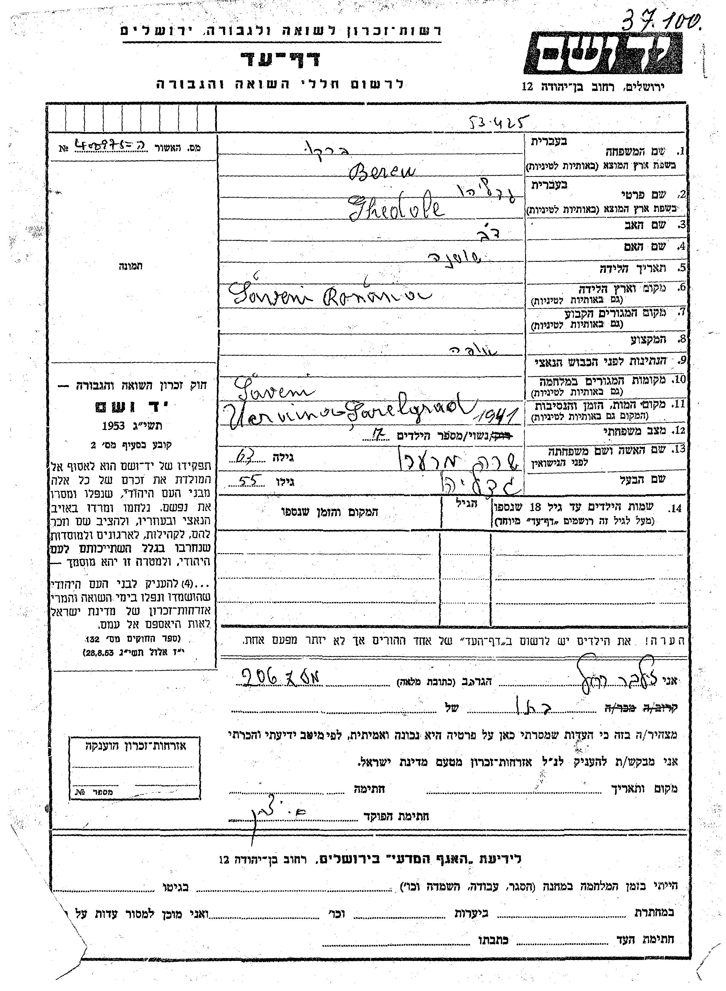 Яд Вашем - Листы свидетельских показаний Мемориального фонда