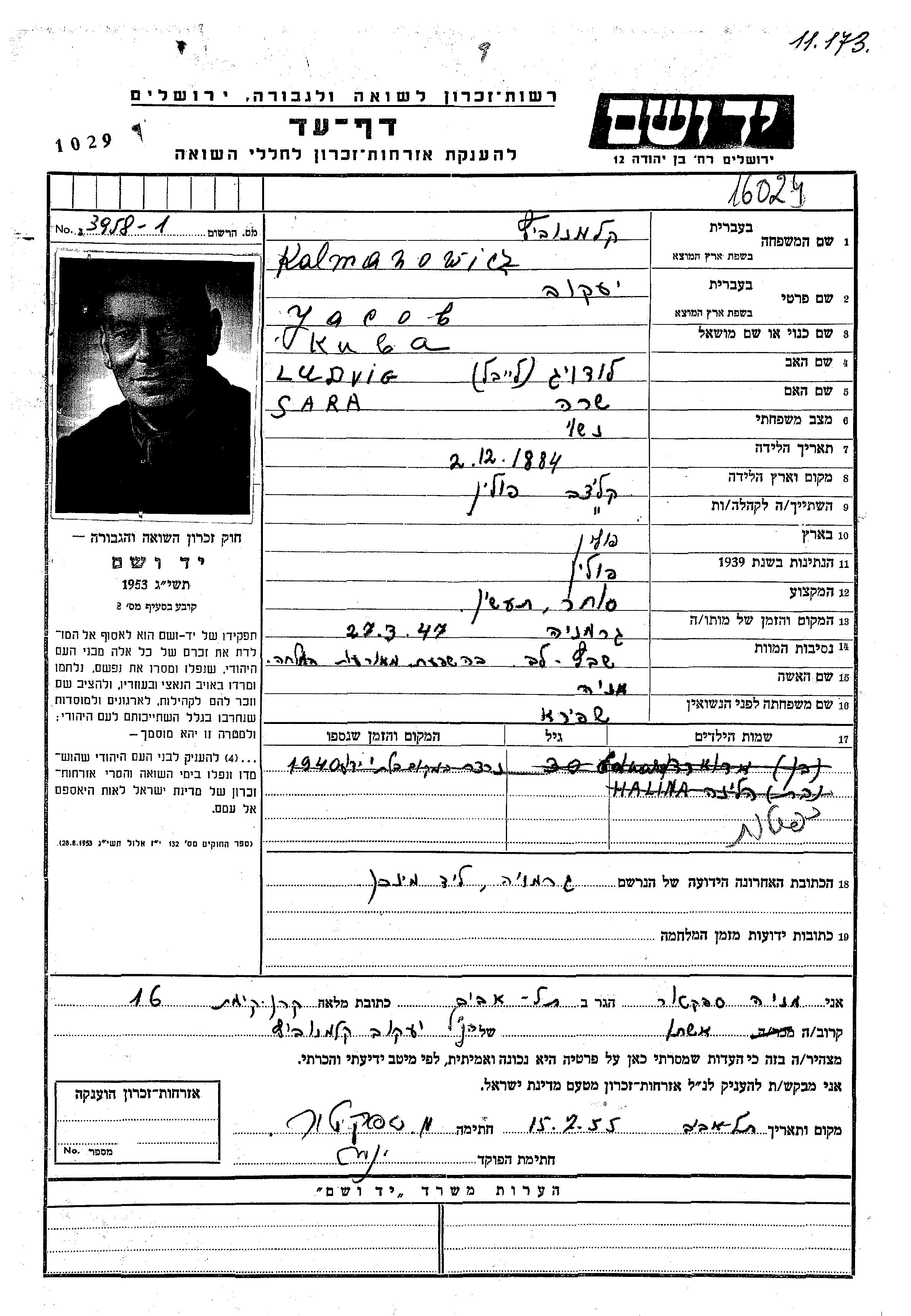 Яд Вашем - Листы свидетельских показаний Мемориального фонда