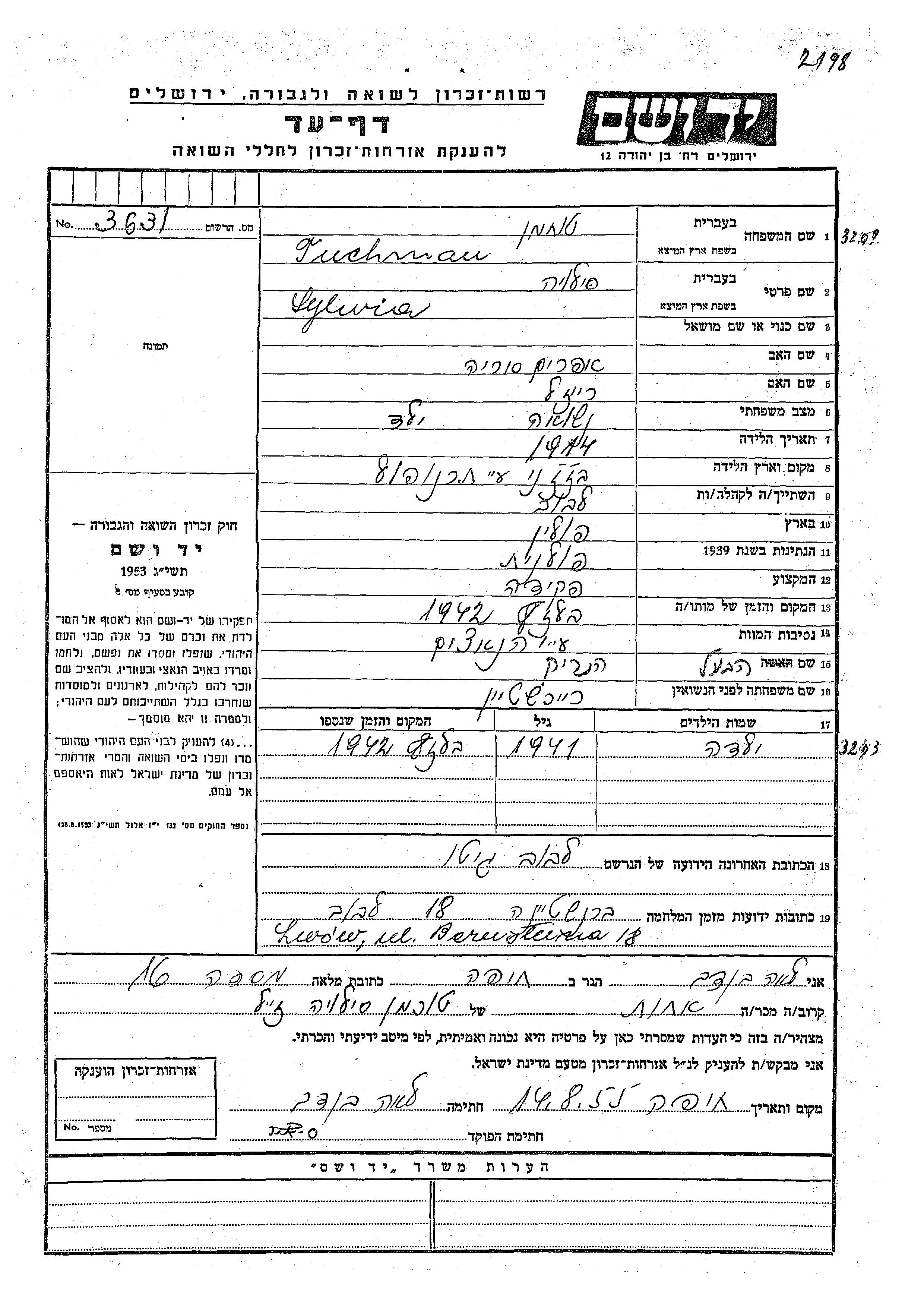 Яд Вашем - Листы свидетельских показаний Мемориального фонда