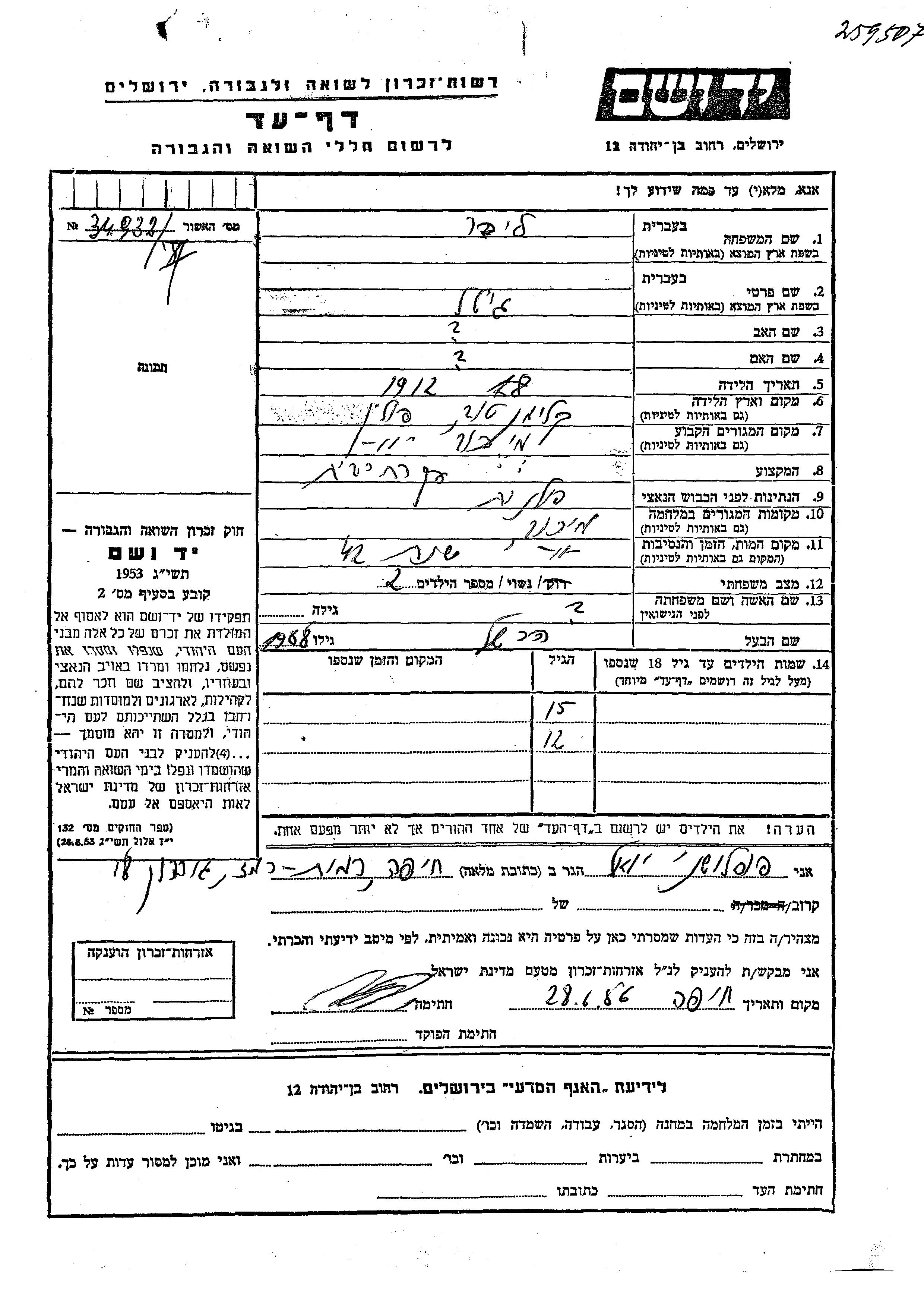 Яд Вашем - Листы свидетельских показаний Мемориального фонда