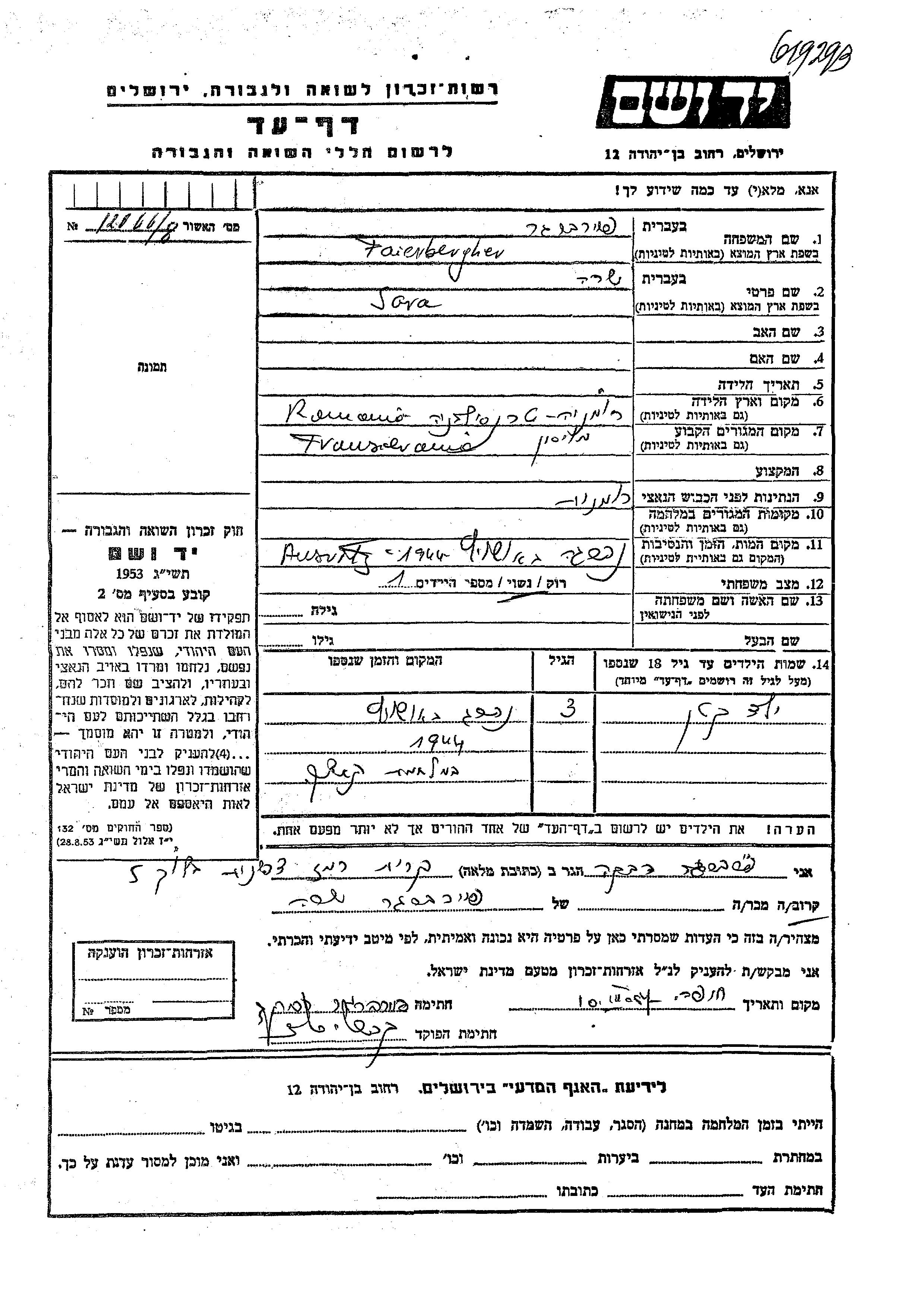 Яд Вашем - Листы свидетельских показаний Мемориального фонда
