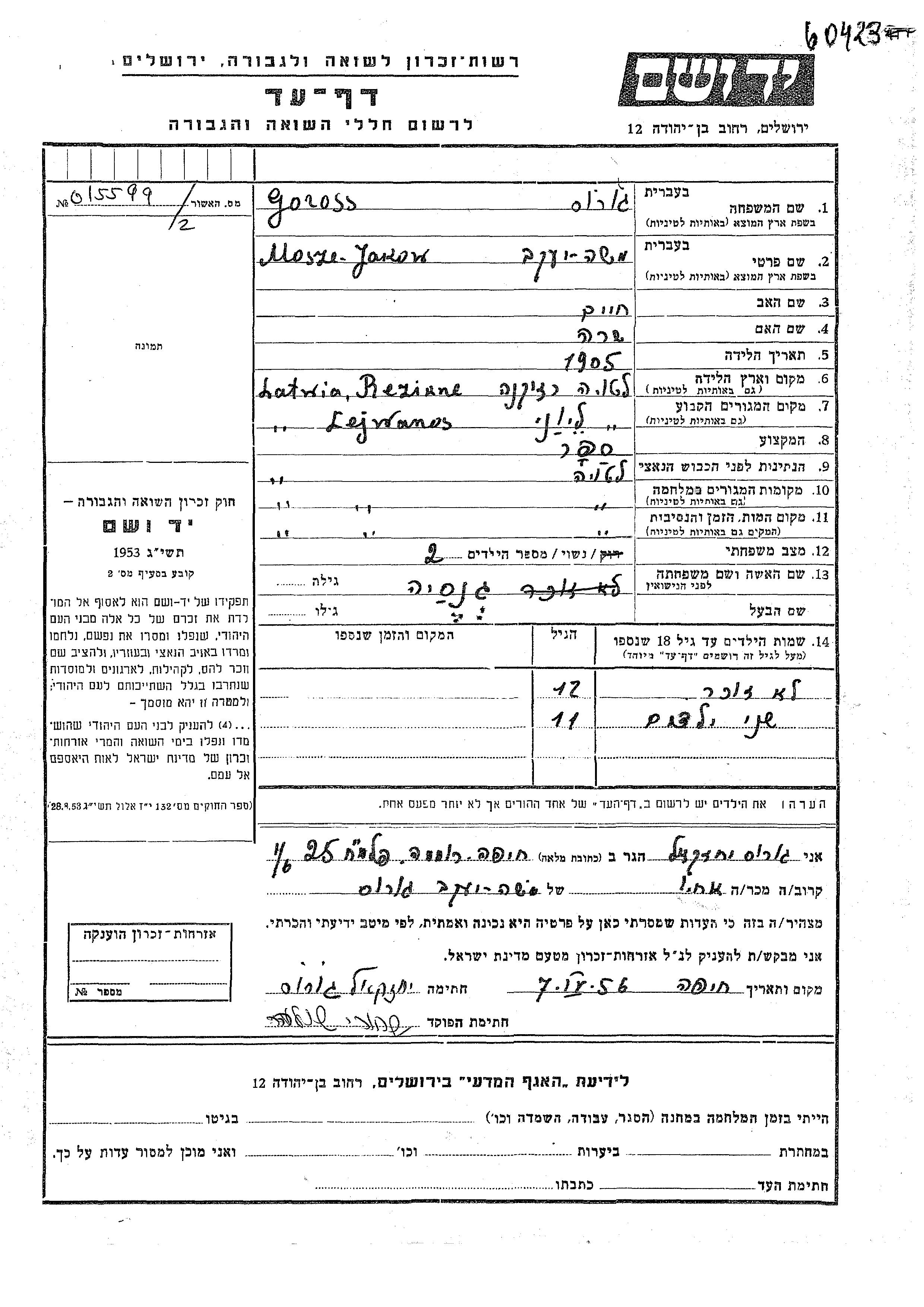Яд Вашем - Листы свидетельских показаний Мемориального фонда