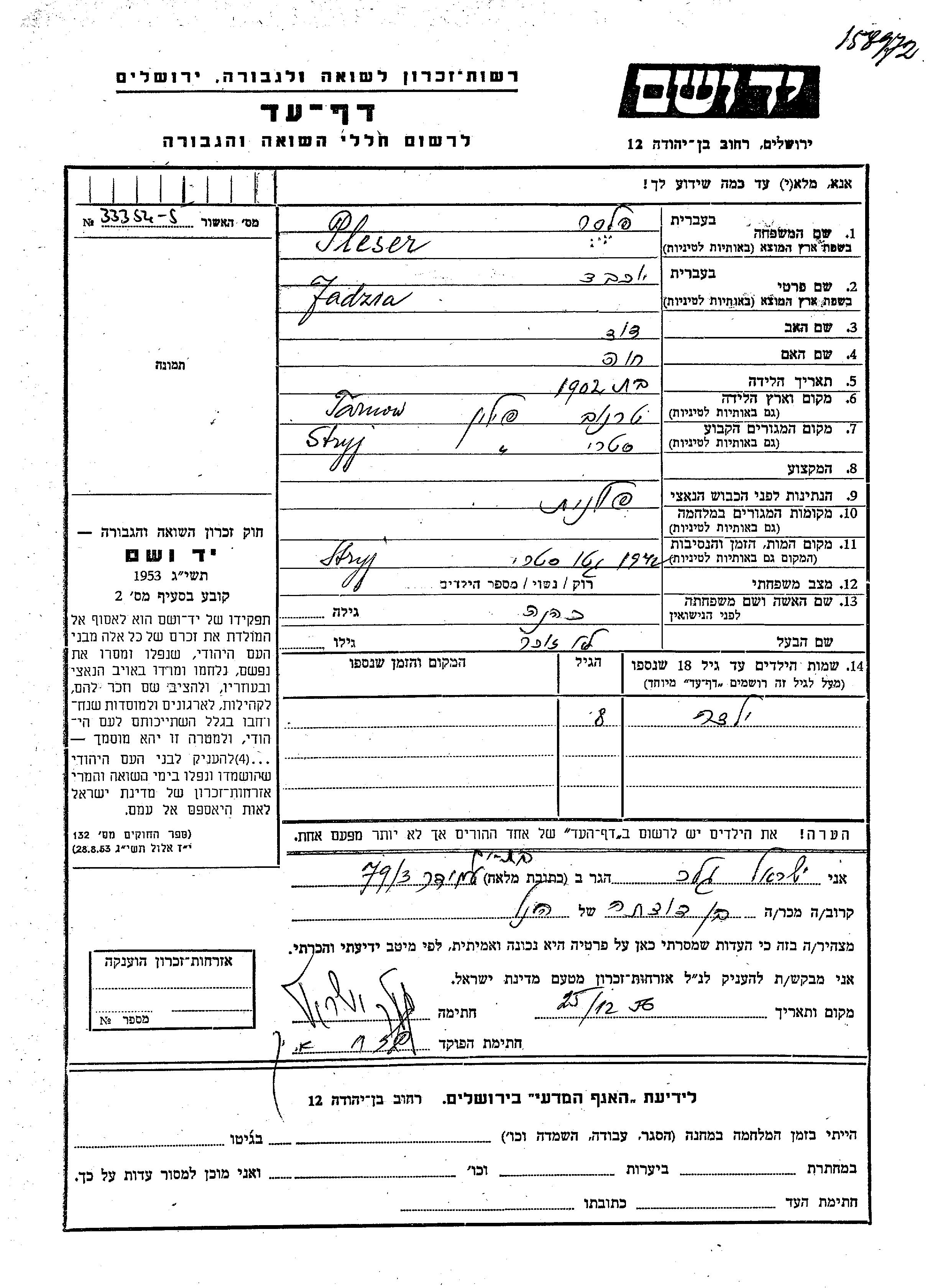 Яд Вашем - Листы свидетельских показаний Мемориального фонда
