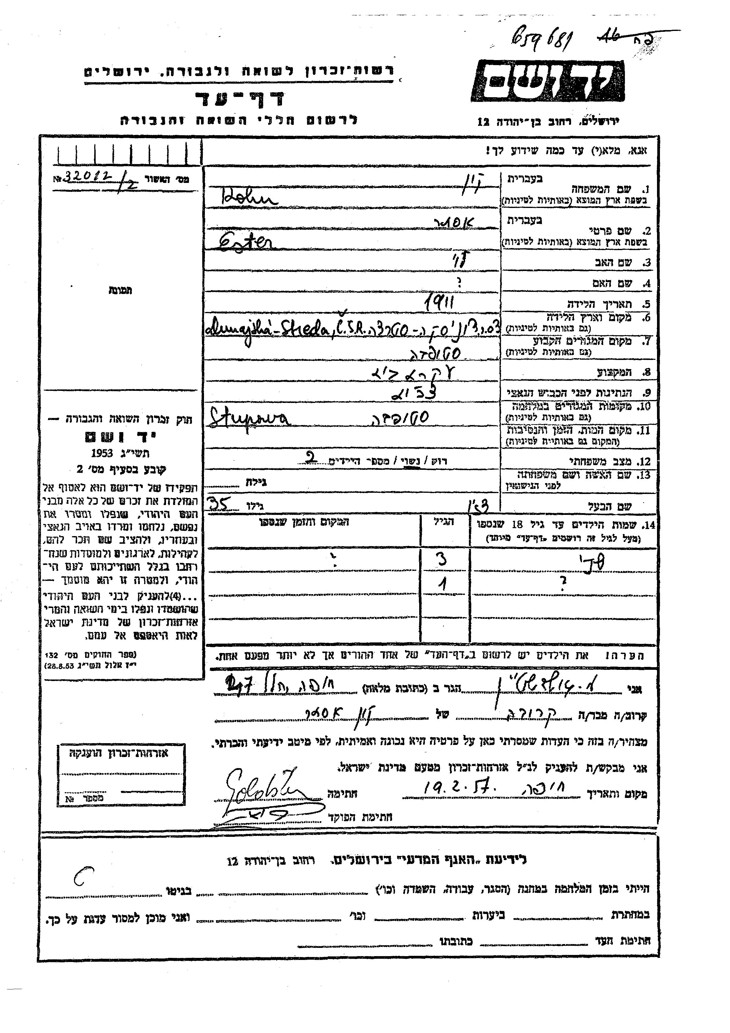Яд Вашем - Листы свидетельских показаний Мемориального фонда