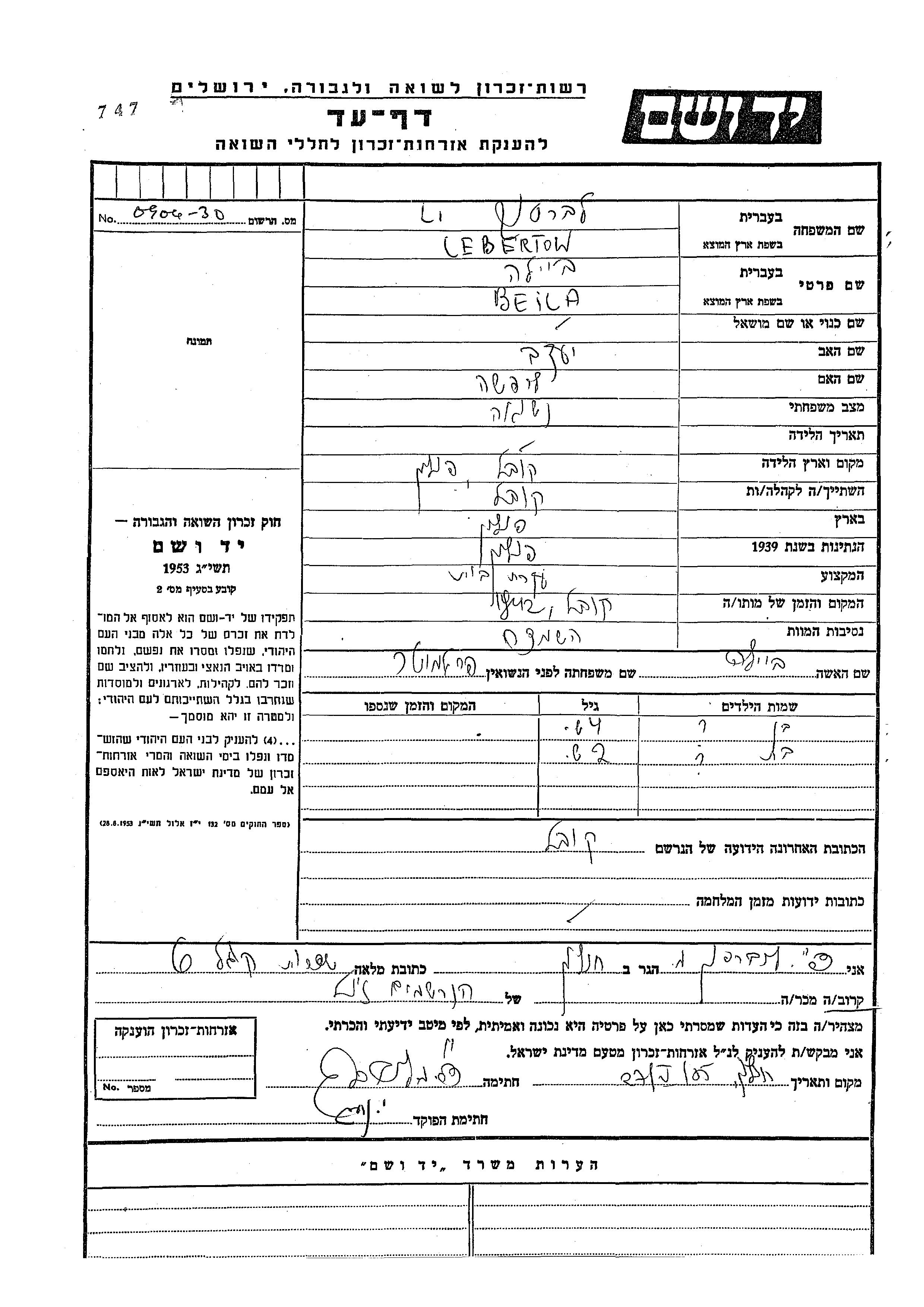 Яд Вашем - Листы свидетельских показаний Мемориального фонда