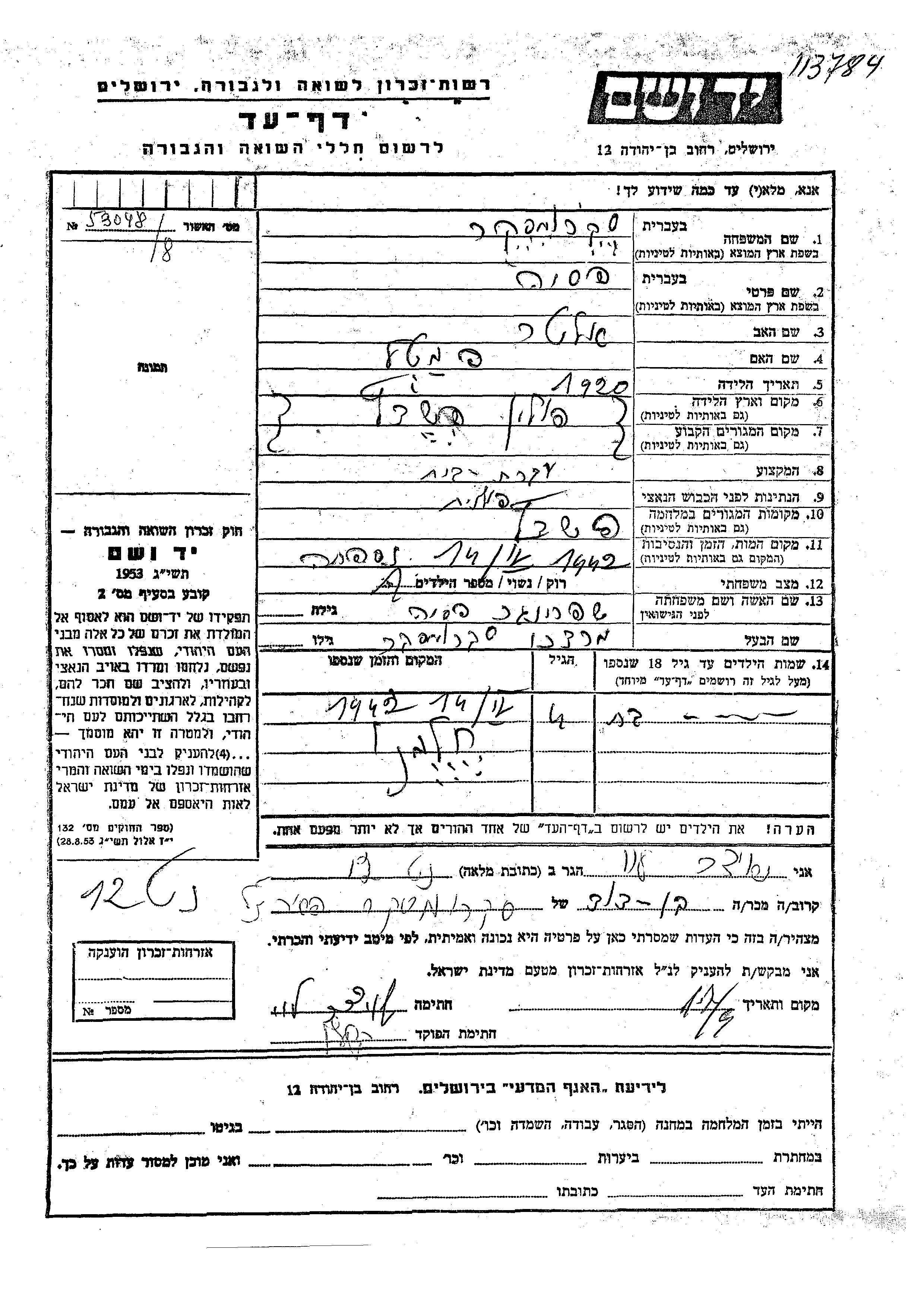 Яд Вашем - Листы свидетельских показаний Мемориального фонда
