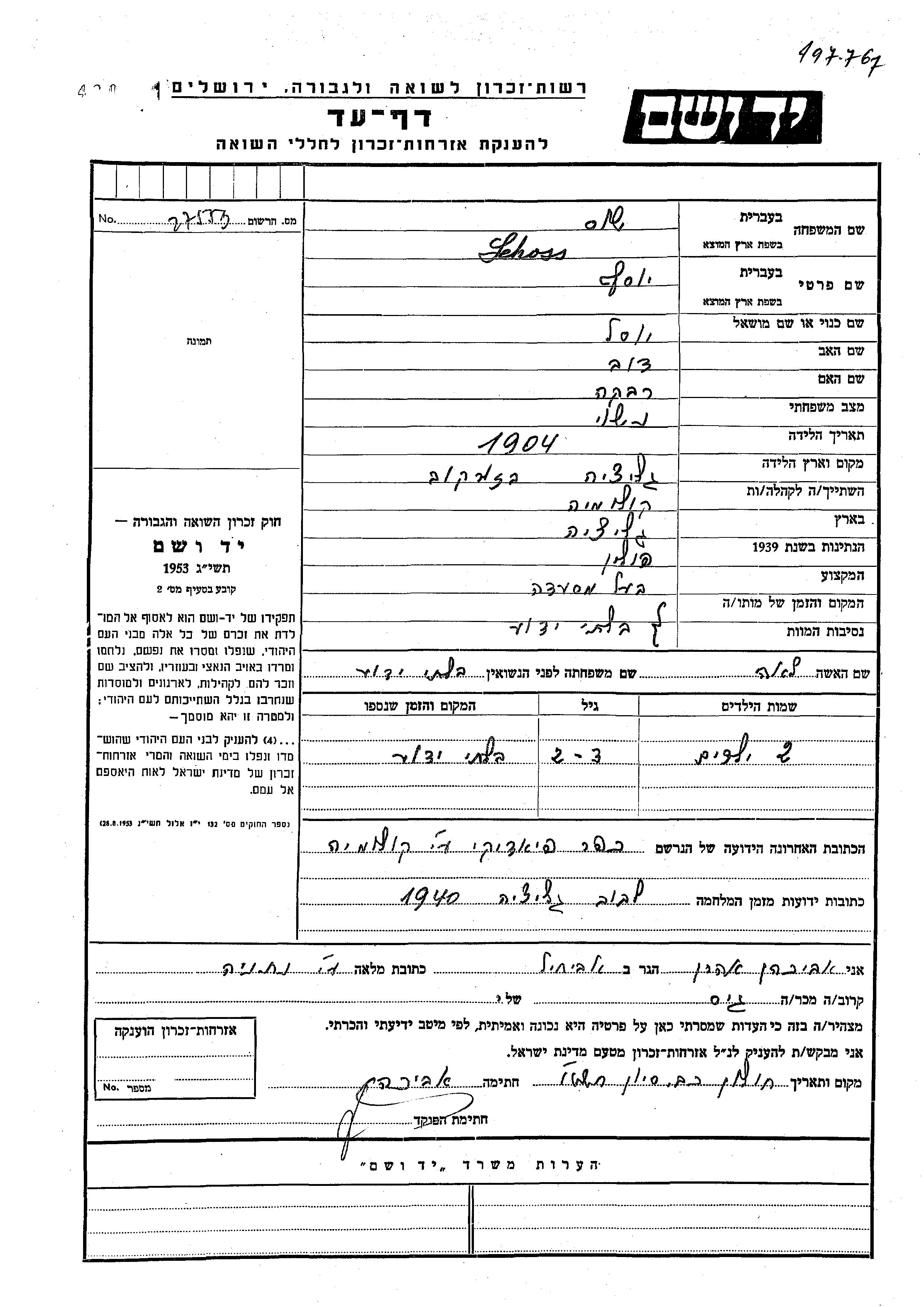 Яд Вашем - Листы свидетельских показаний Мемориального фонда