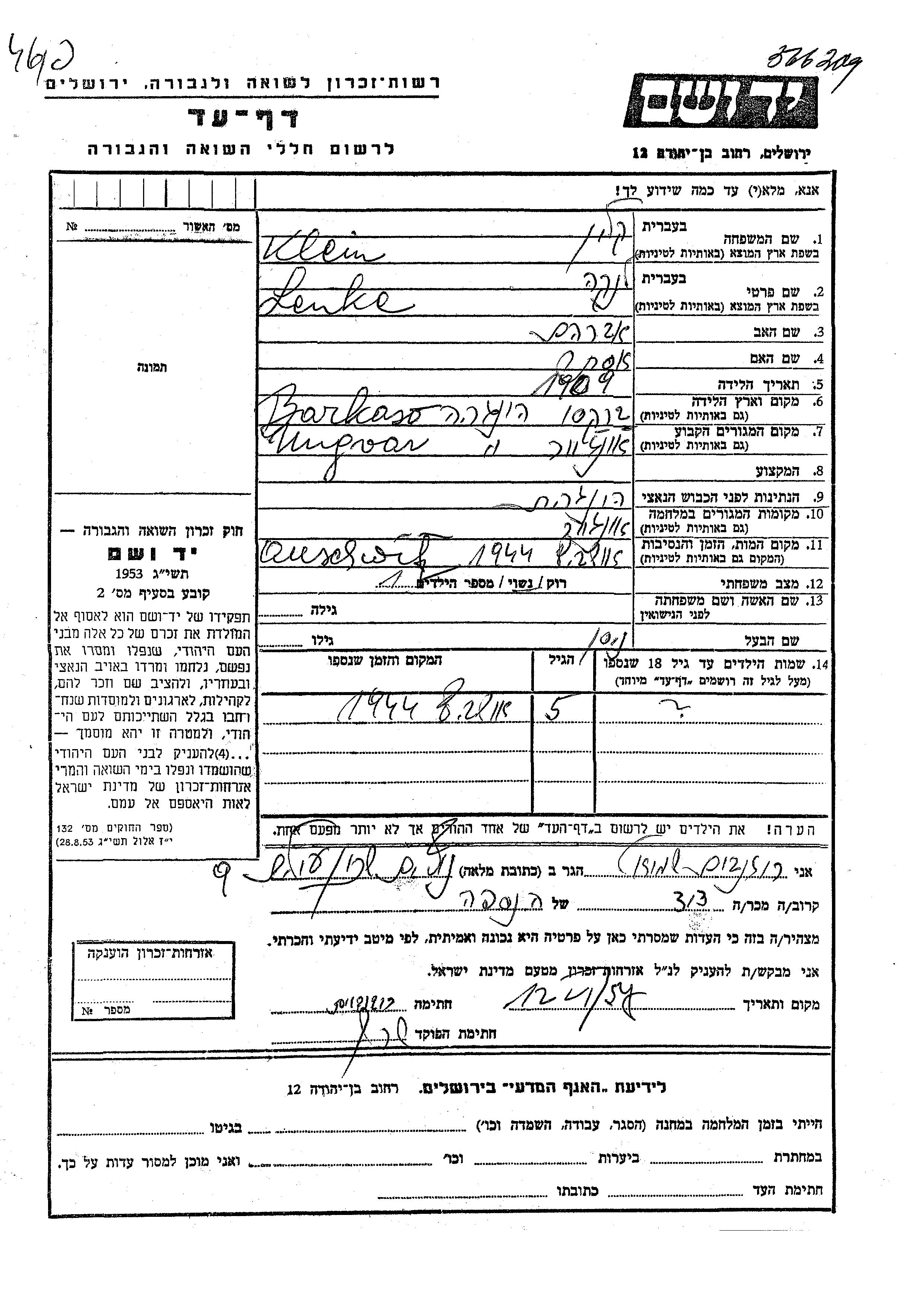 Яд Вашем - Листы свидетельских показаний Мемориального фонда