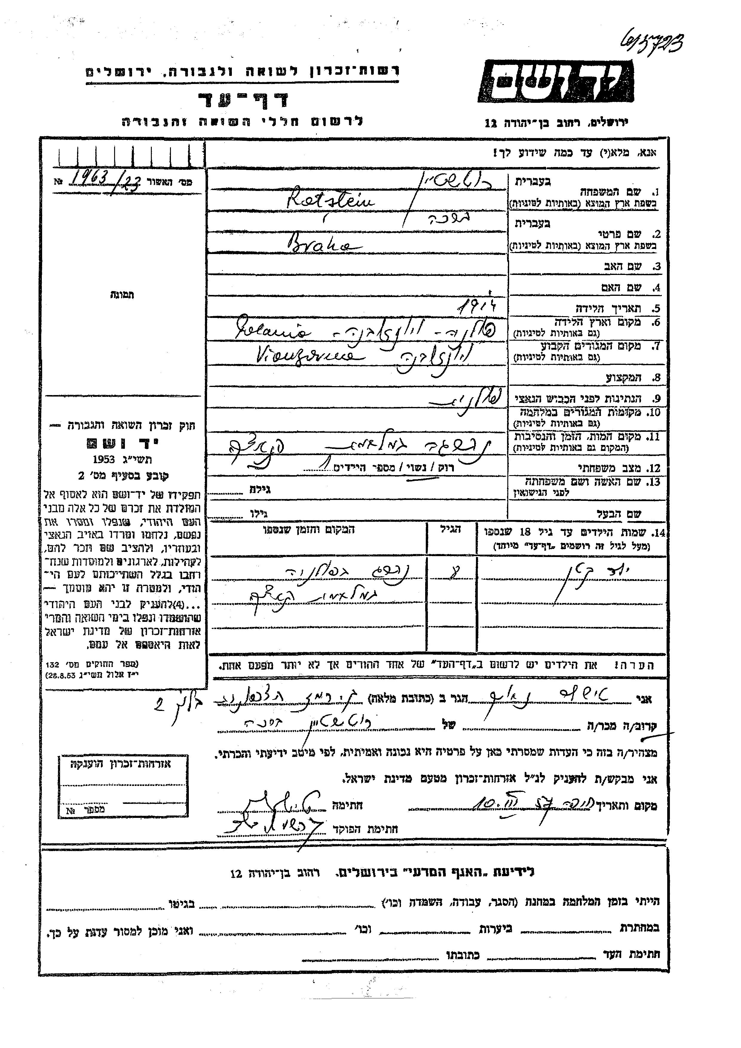 Яд Вашем - Листы свидетельских показаний Мемориального фонда