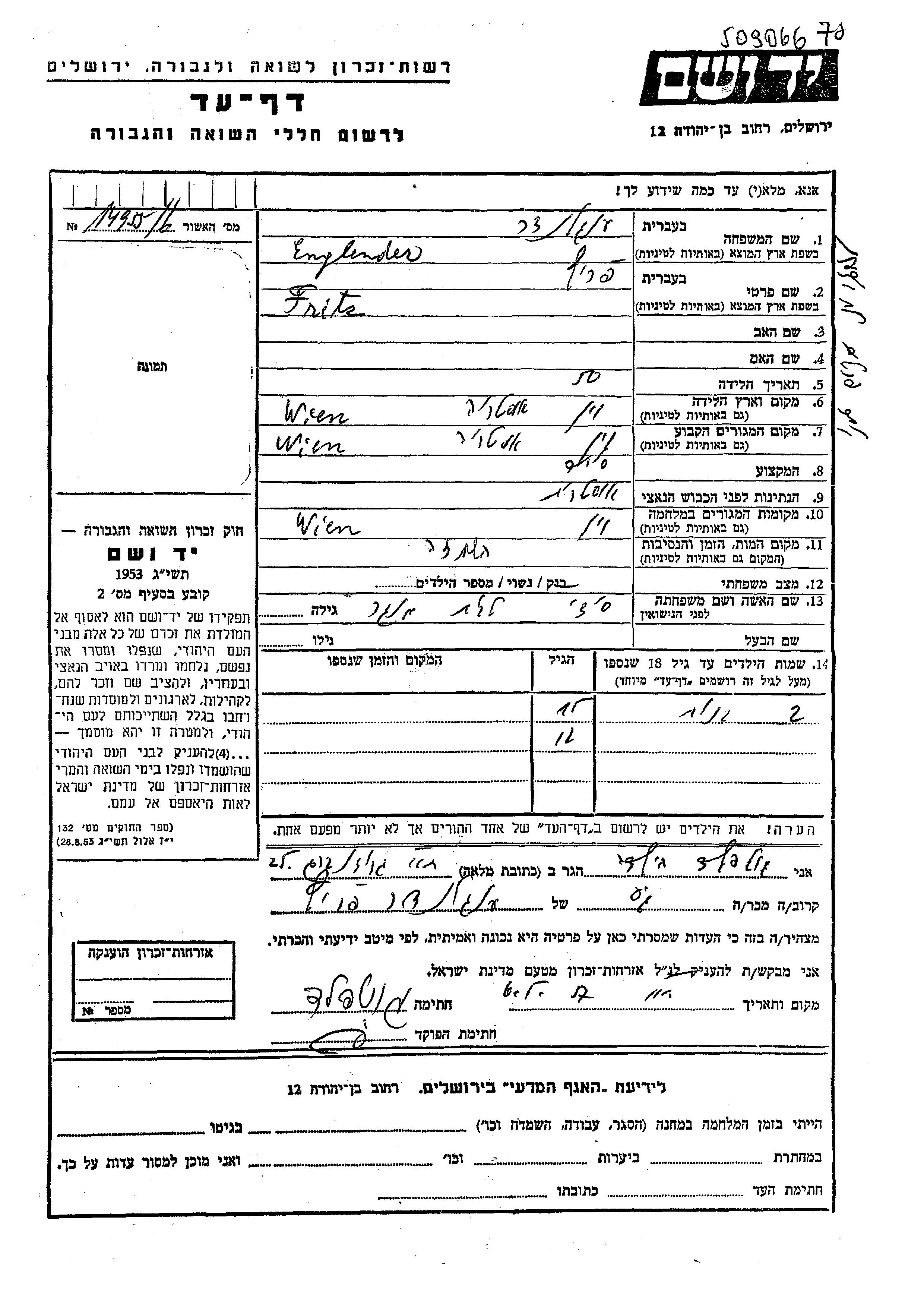 Имя неизвестно Энглендер родился/родилась Фриц Сиди девичья фамилия Менгер. Ребенок. Место жительства до войны: Вена, Австрия. Место во время войны: Вена, Австрия.