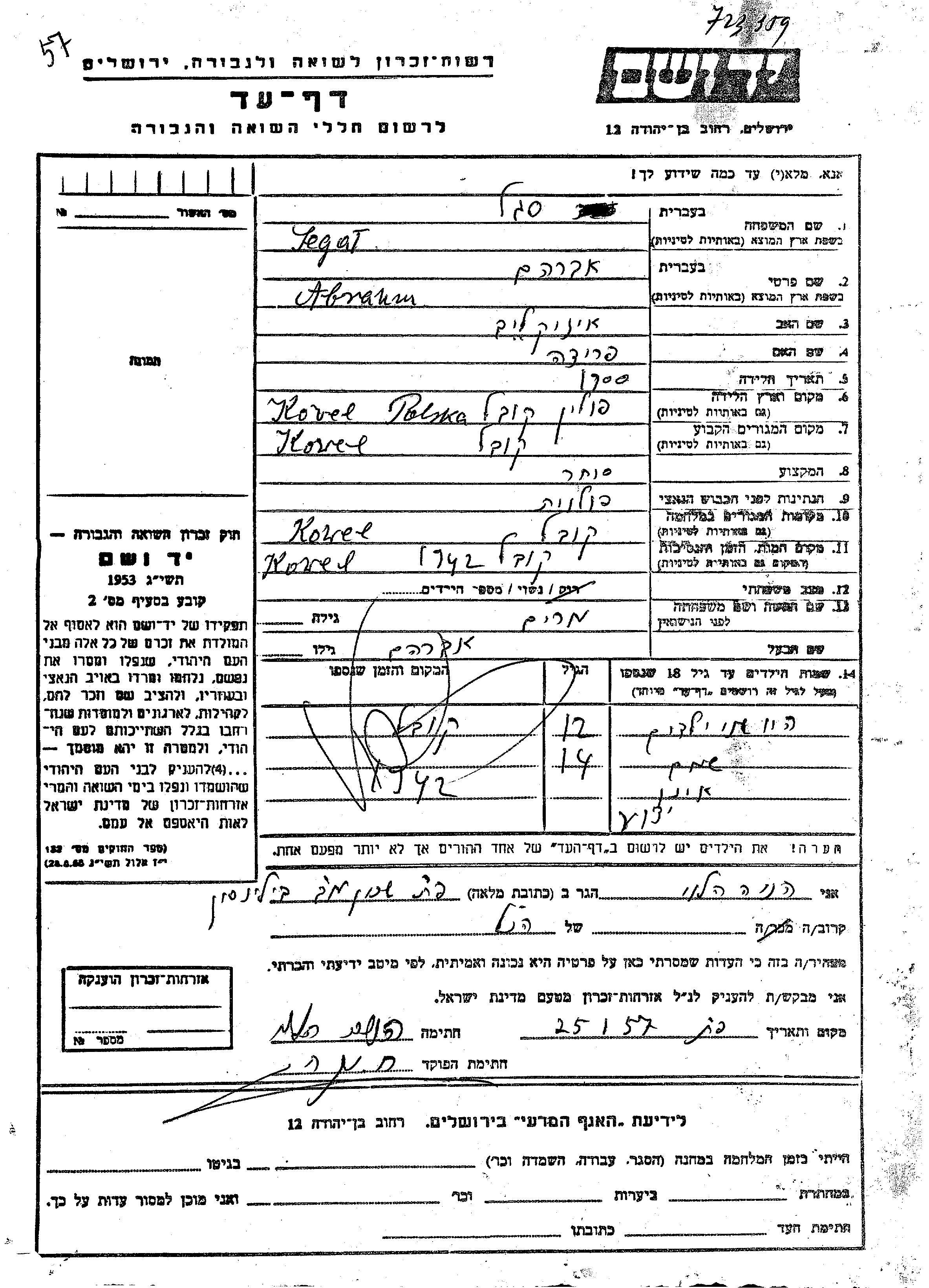 Яд Вашем - Листы свидетельских показаний Мемориального фонда