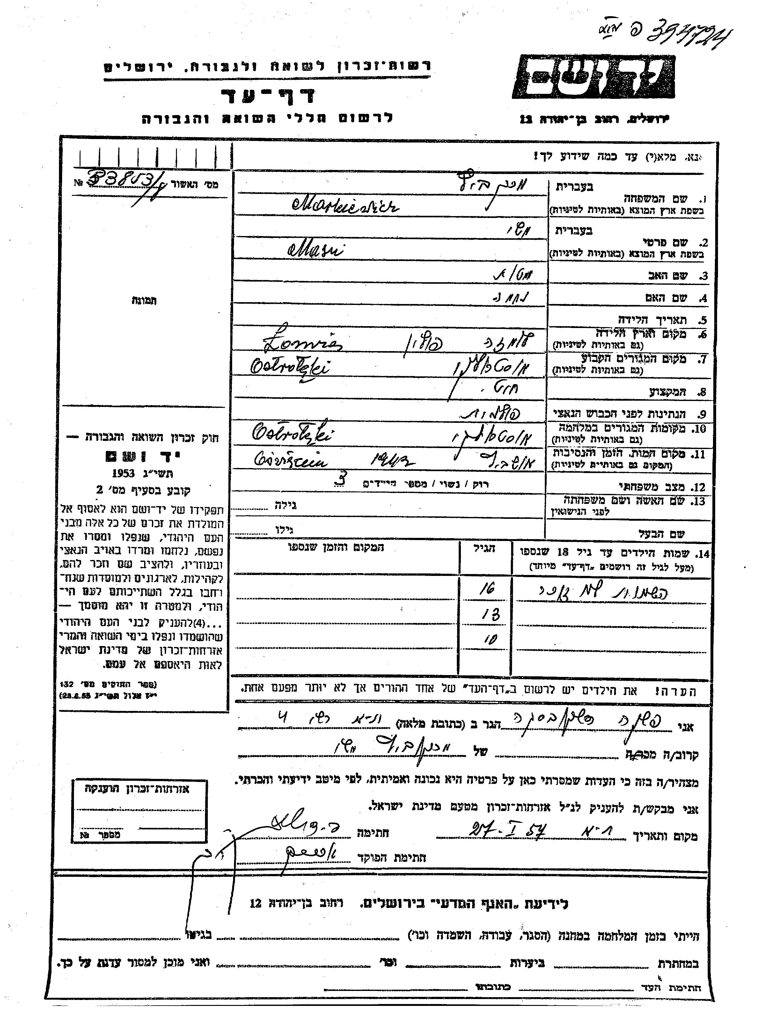Яд Вашем - Листы свидетельских показаний Мемориального фонда